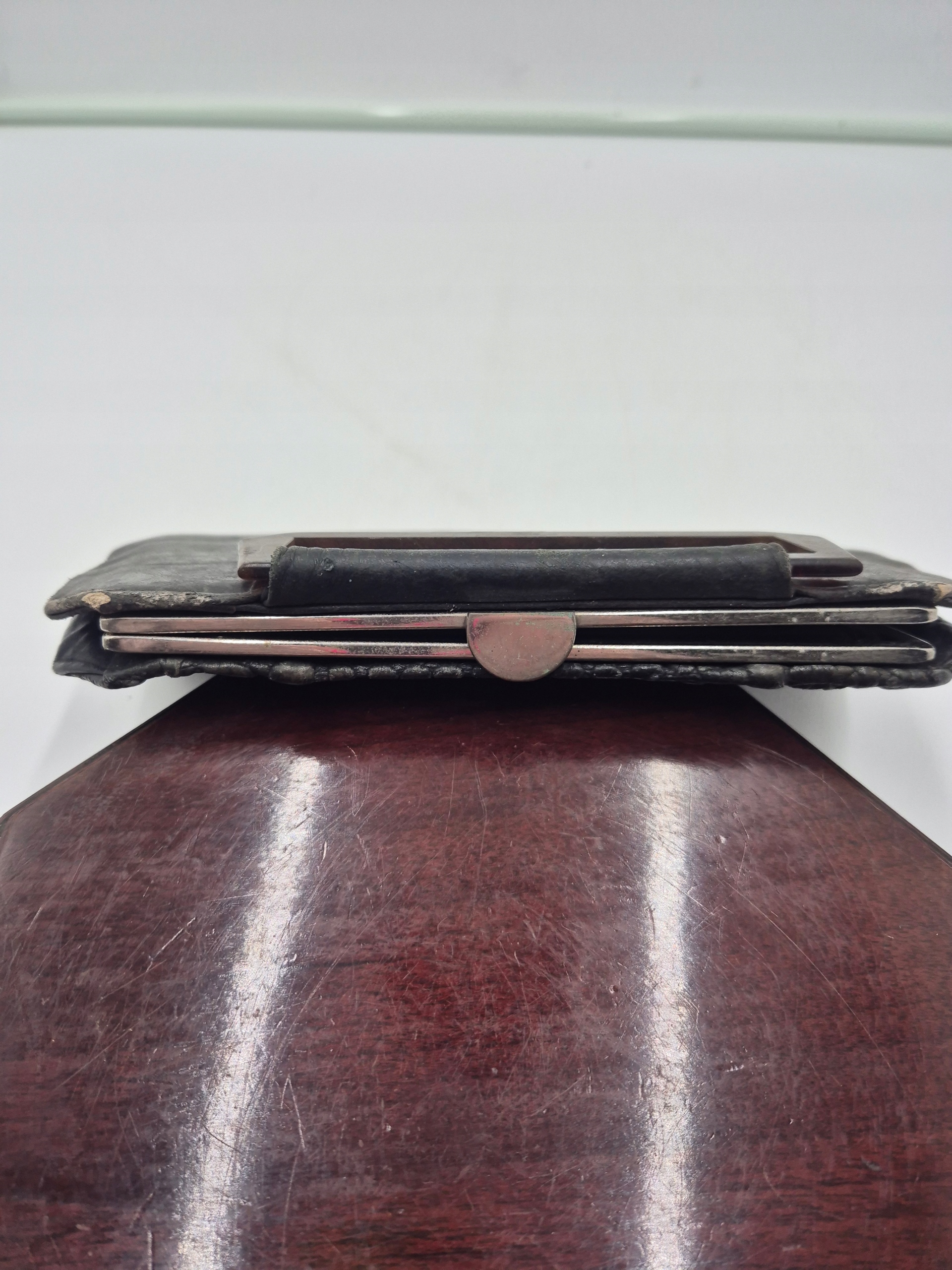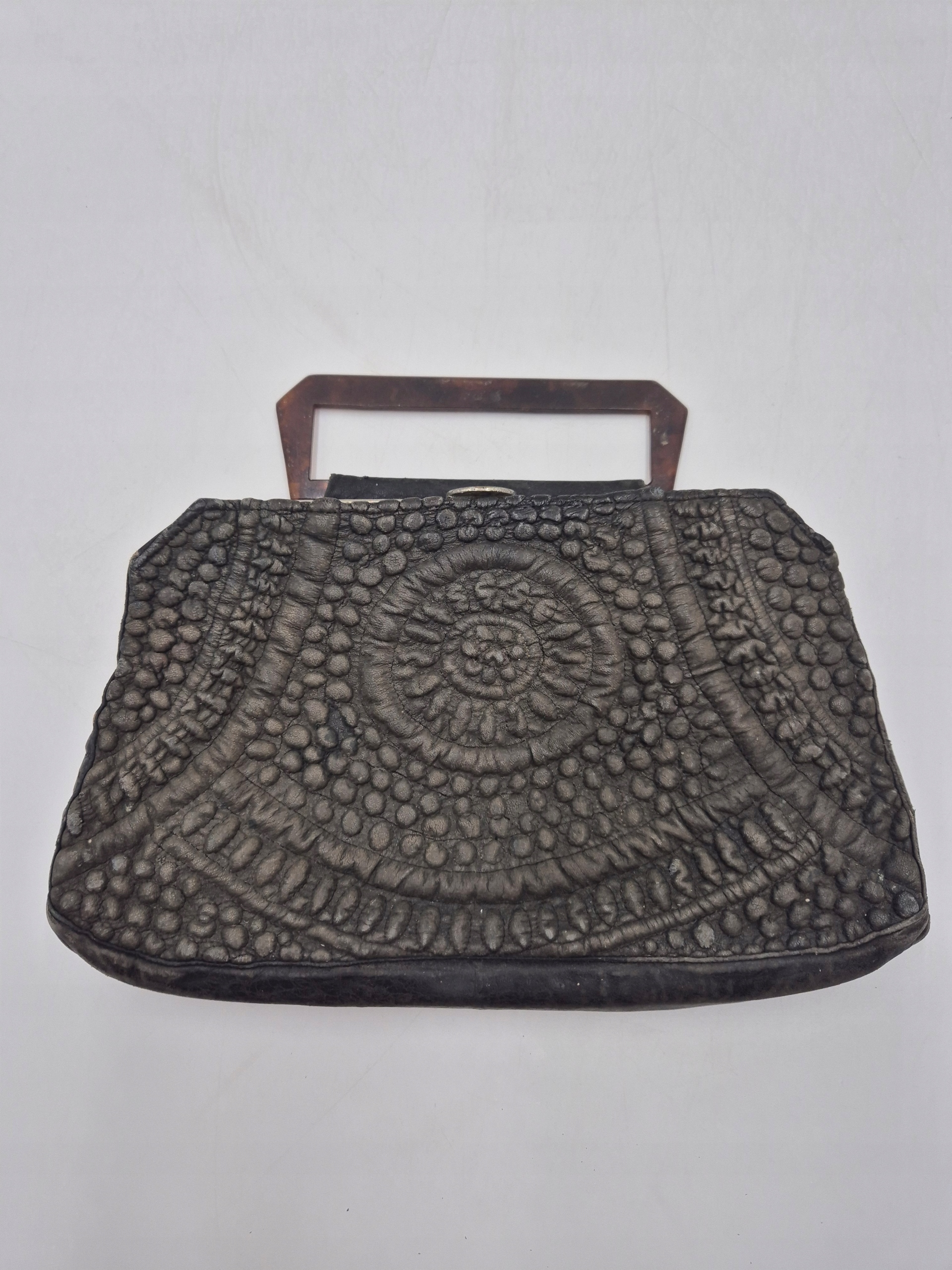 Жіноча сумочка дев'ятнадцятого століття Antyka французька чорна екструдована шкіра