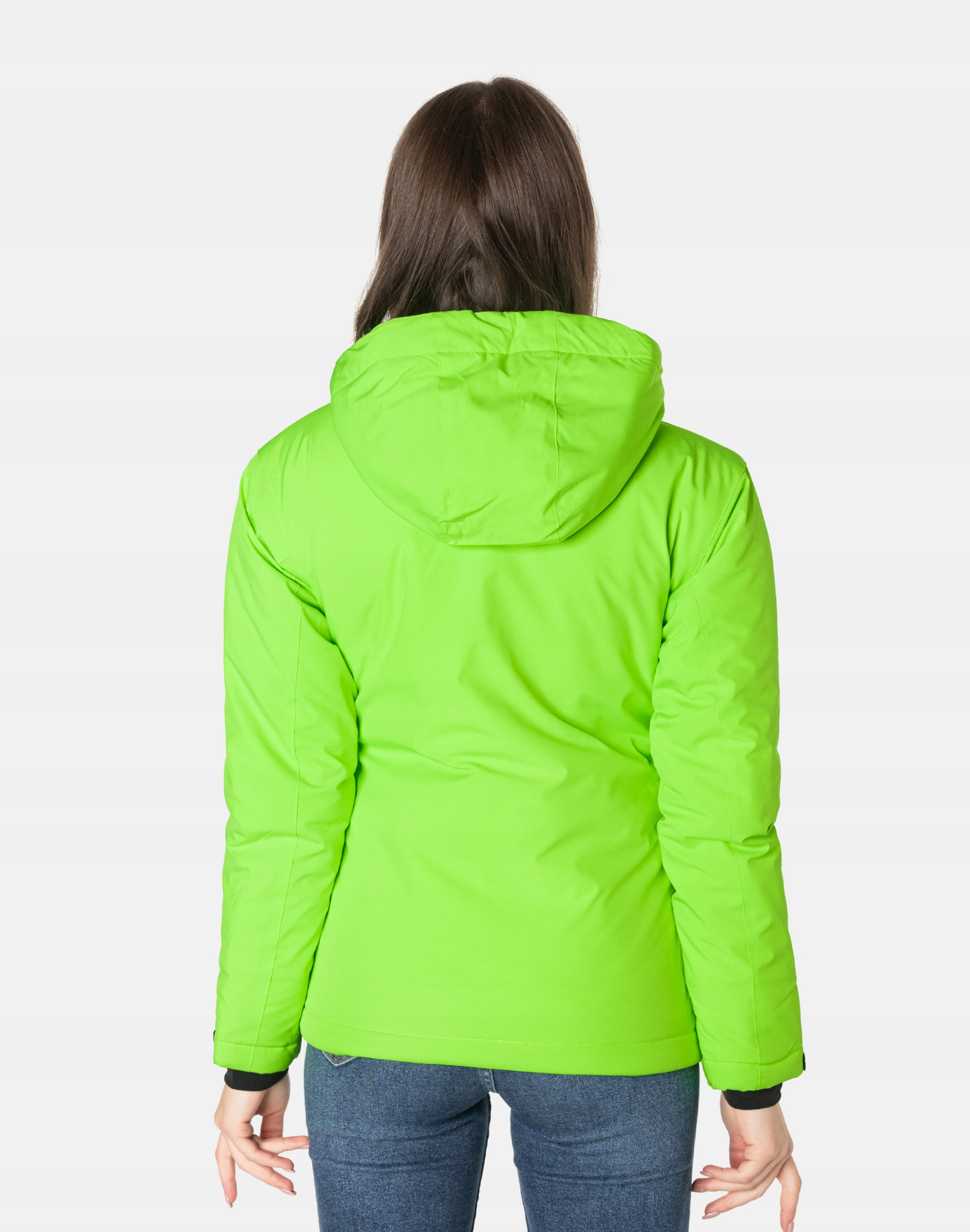 Жіноча гірськолижна куртка модель H012 виготовлена за новітніми технологіями та відповідає останнім тенденціям спортивної моди. Він надзвичайно теплий, тому що повністю утеплений синтепоном. Зовнішній матеріал має водовідштовхувальне покриття, яке запобігає насиченню зовнішнього шару водою. Куртка повністю застібається на водонепроникну блискавку і має аж 7 кишень!!! Спереду є дві кишені для рук на водонепроникних блискавках, дві вертикальні нагрудні кишені також на водонепроникних блискавках і дві внутрішні кишені для мобільного телефону/MP3/MP4/окулярів/рукавичок/балаклави/документів/гаманця тощо. На лівому рукаві куртки з прихована водонепроникна блискавка та кишеня SKIPASS. 3D регульований утеплений капюшон захистить вашу голову від дощу, вітру та холоду, а високий комір-стійка ефективно захищає підборіддя та шию, а часто навіть замінює шарф, що дуже зручно. Низ куртки можна регулювати по ширині та облягати за допомогою еластичного шнурка та стопорів, які дозволяють точно підігнати куртку до тіла. Куртка також має протиковзкий антисніговий пояс, який захищає від втрати тепла та запобігає проникненню холоду, вологи, води та снігу з нижньої частини куртки, а також гнучкі напіврукавички з отворами для пальців, інтегрованими з рукавами.