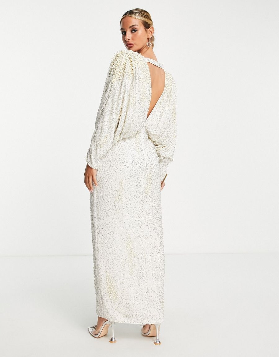 ЖІНОЧА ВЕСІЛЬНА СУКНЯ З ПРИКРАСАМИ ECRU MAXI 36 1XBA
