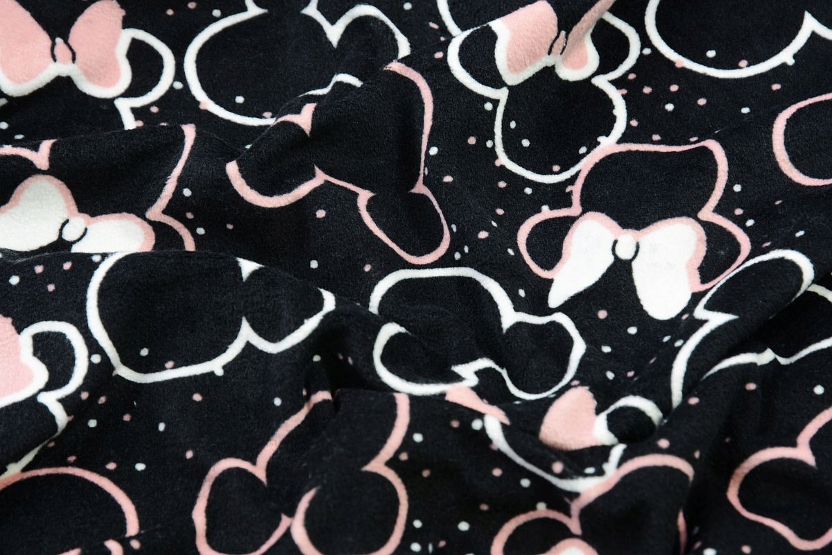 Крій: блузка з довгими рукавами, принт Мінні Маус по всьому, гумка на талії, манжети на ногах і м’яка еластична манжета на шиї.