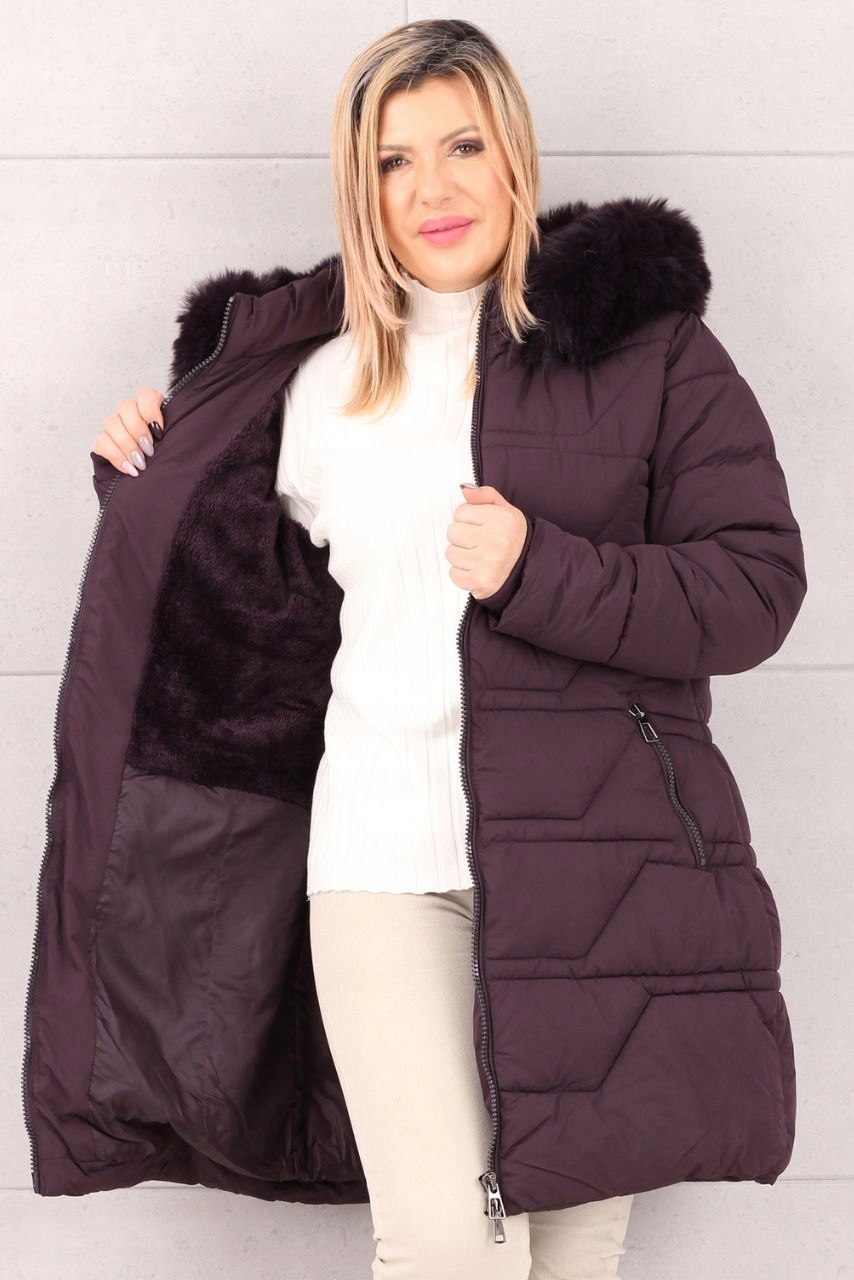 ЖІНОЧА ЗИМОВА СТЬГАНА УТЕПЛЕНА КУРТКА З ХУТРЯНИМ ЗНІМНИМ КАПЮШОНОМ 42-52