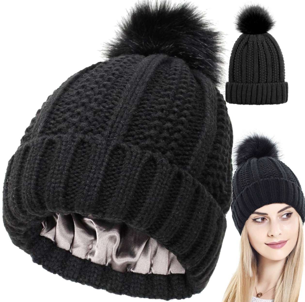 Жіноча тепла утеплена зимова шапка з помпоном, гнучка та м'яка, плетена пряжа