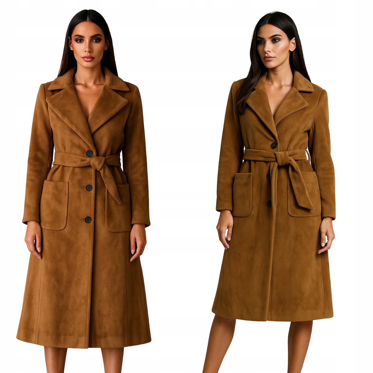 ЖІНОЧЕ ДОВГЕ ПАЛЬТО МАКСІ - ТЕМНО-ВЕРБЛЮЖИЙ, КОРИЧНЕВИЙ - З L-ПОЯСОМ