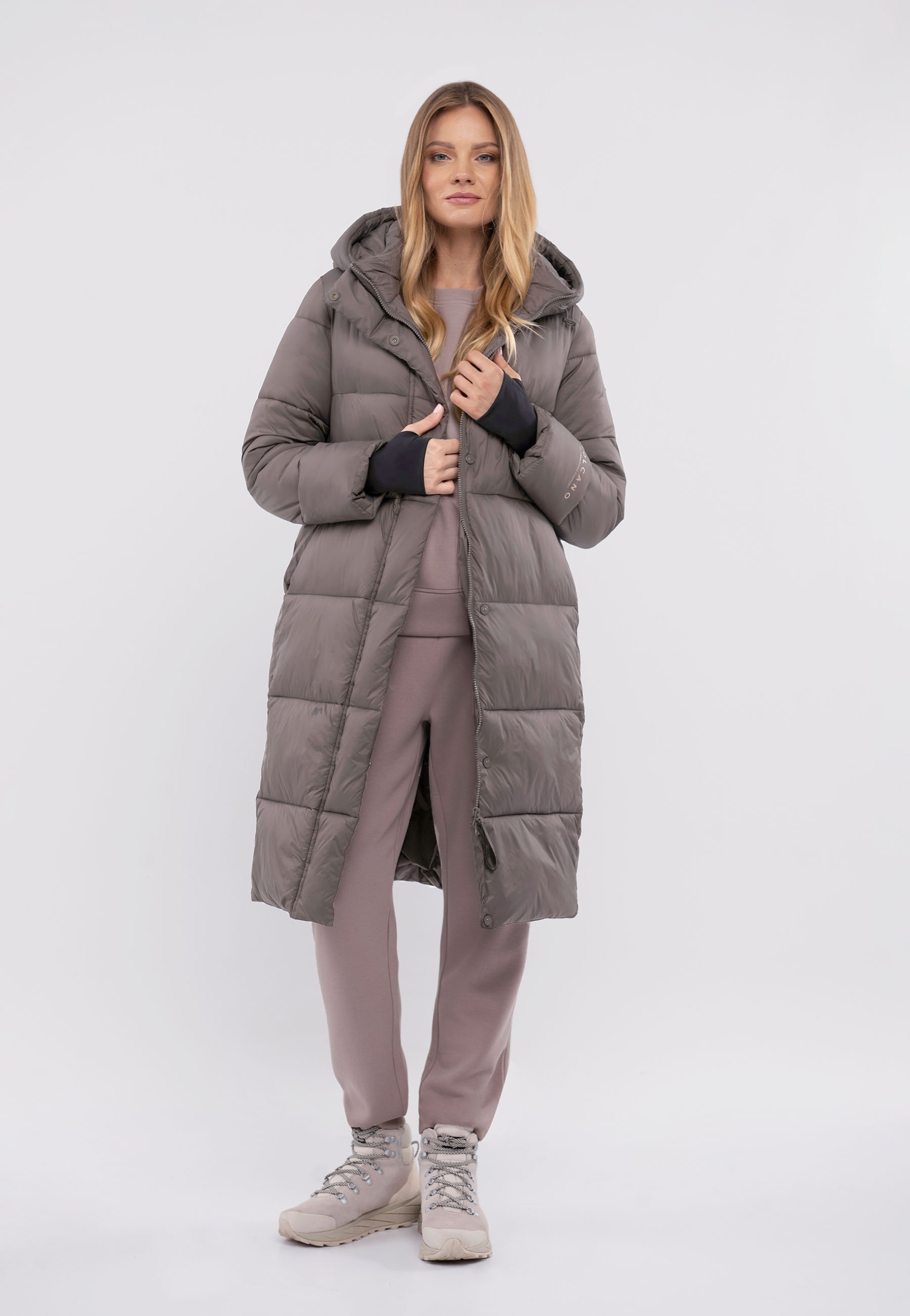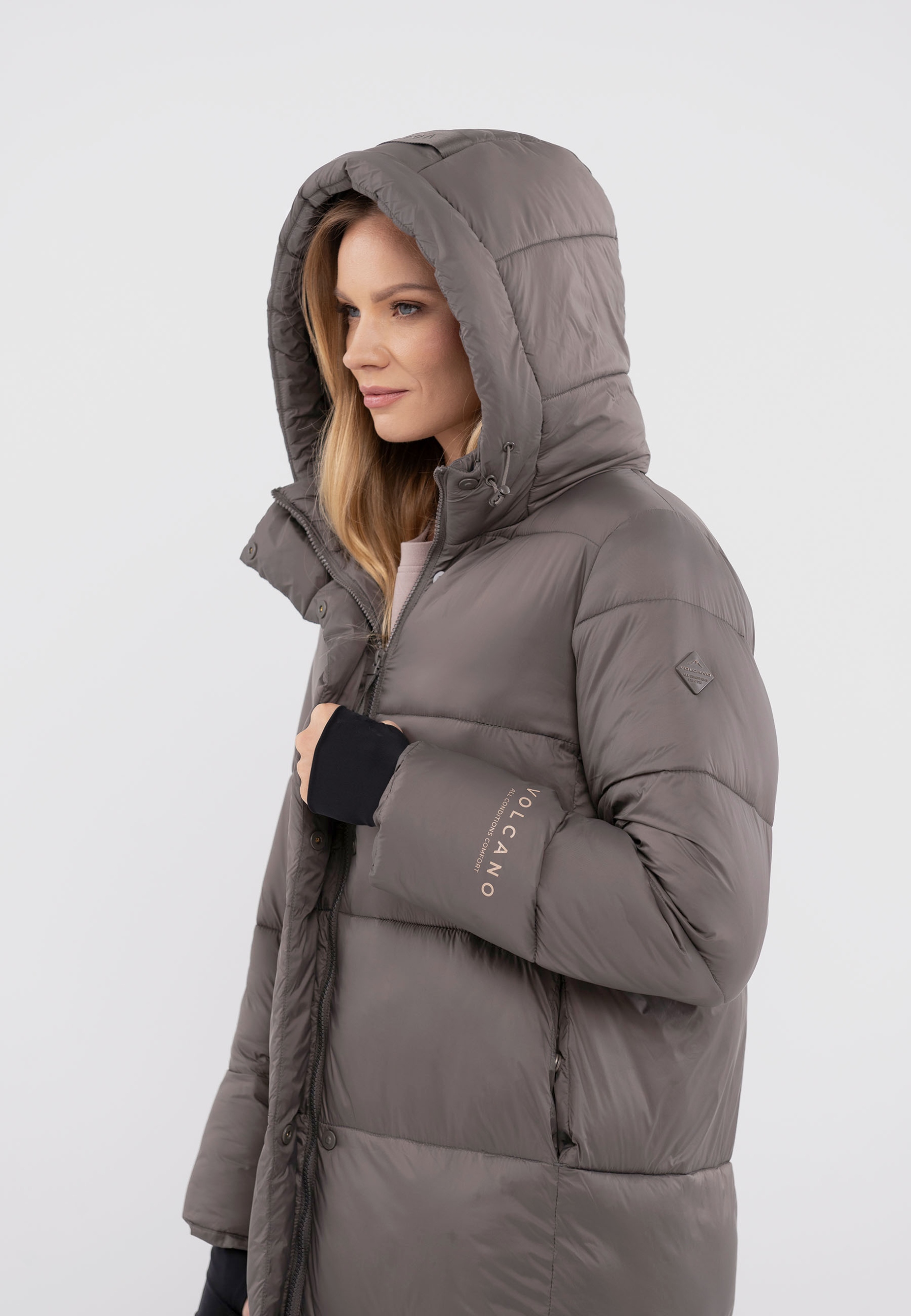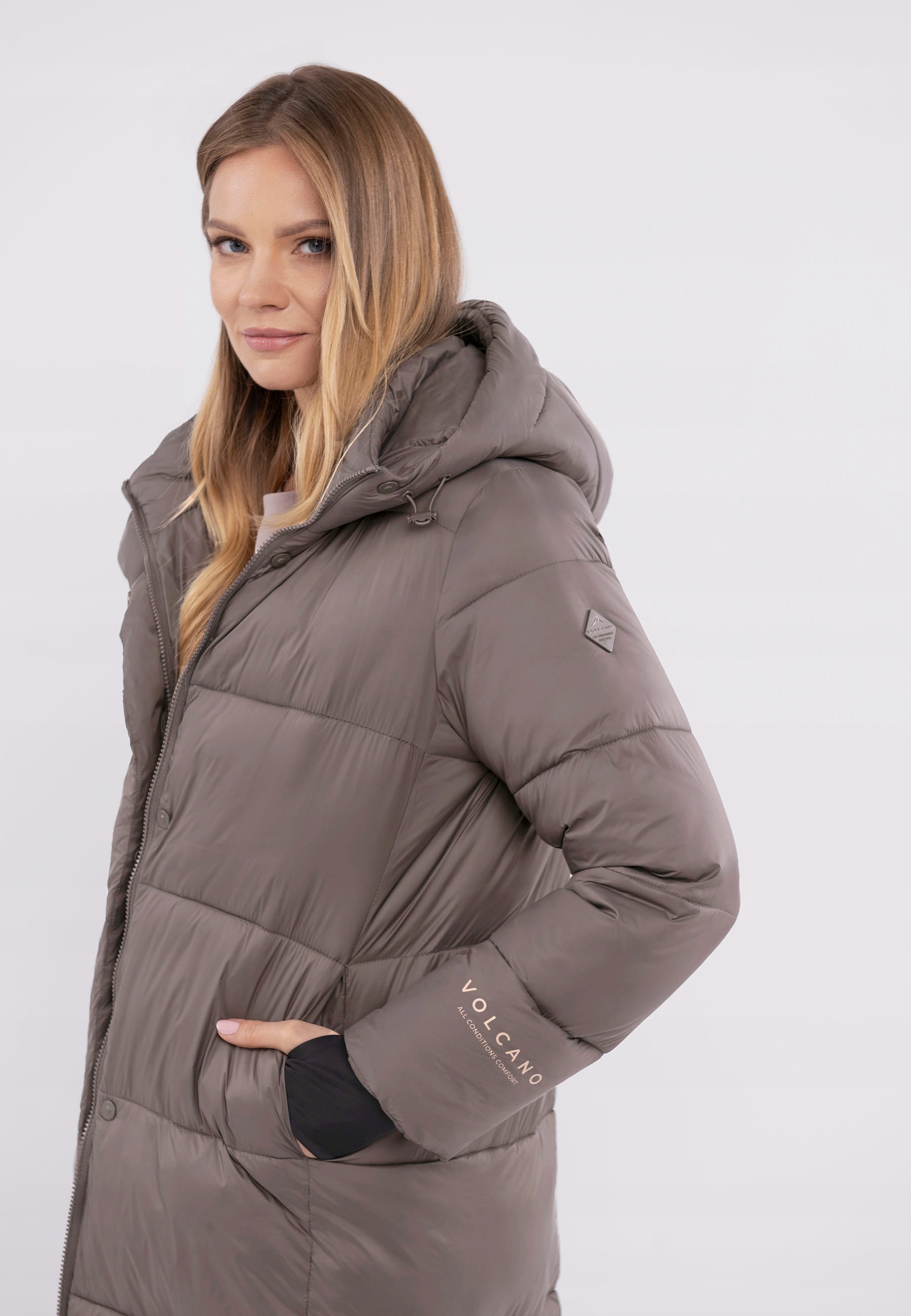 ЖІНОЧЕ ДОВГЕ СТЕГАНЕ ПАЛЬТО, КОРИЧНЕВИЙ VOLCANO J-MACADAMIA M