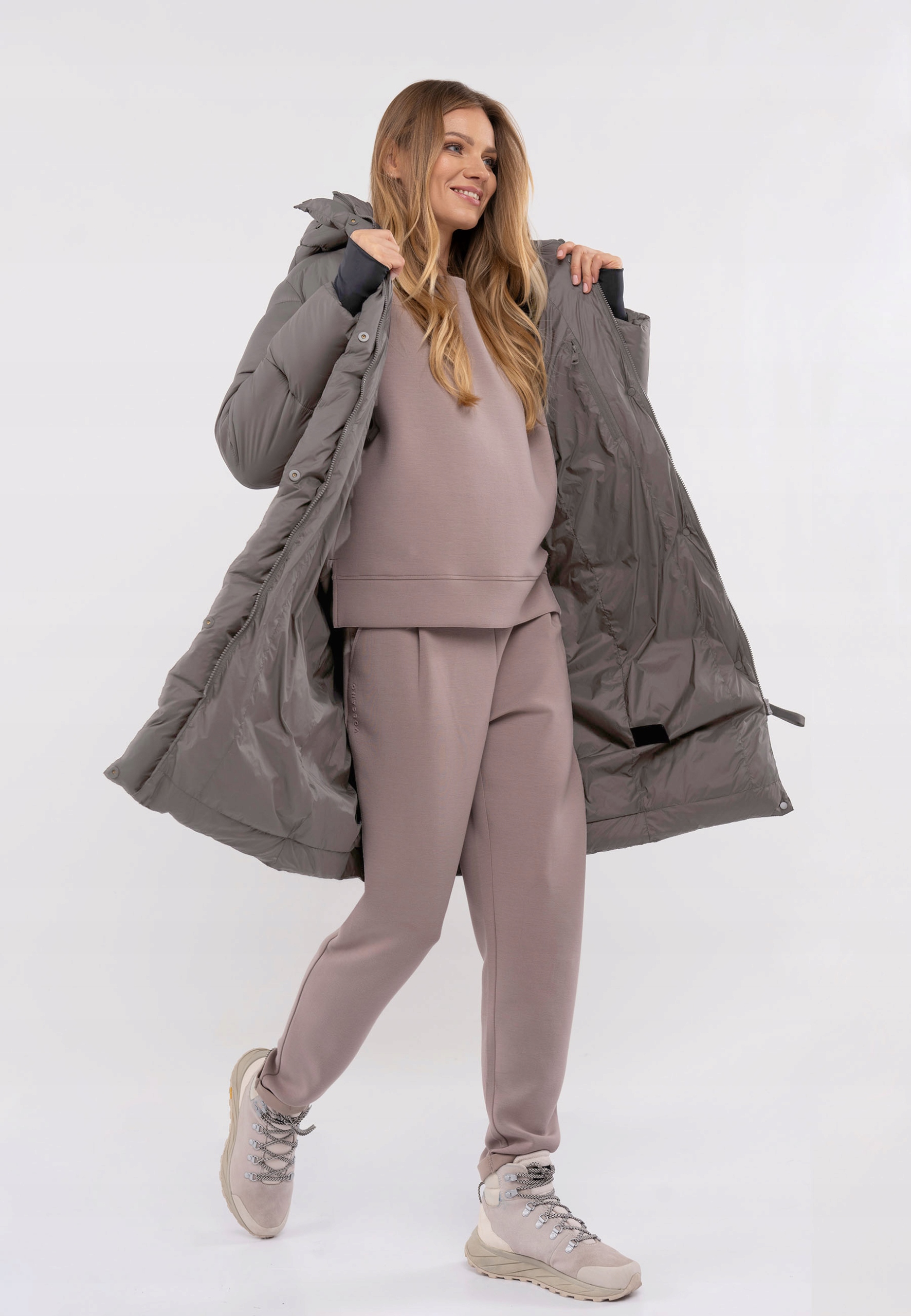 Зимове пальто J-MACADAMIA коричневого кольору характеризується прямим довгим кроєм, який забезпечує свободу рухів. Це тепле пальто з широким стьобанням, що забезпечує не тільки сучасний дизайн, але й поліефірні волокна, які утримують їх на місці та гарантують теплоізоляцію. Незнімний капюшон з високим коміром забезпечує додатковий захист від вітру та холоду, а внутрішні шнурки в капюшоні забезпечують ідеальну посадку.