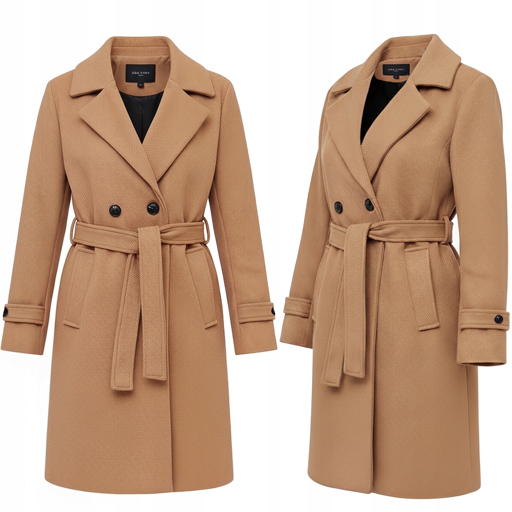 ЖІНОЧЕ ПАЛЬТО В РУБРИЧКУ З ПОЯСОМ ПЕРЕХІДНЕ ОСІНЬ ЗИМА L