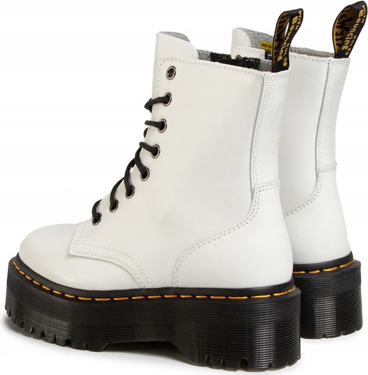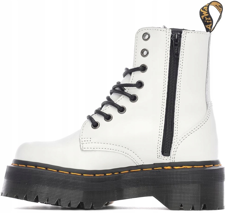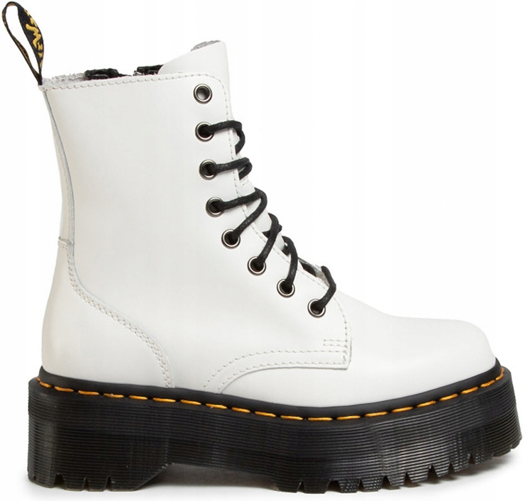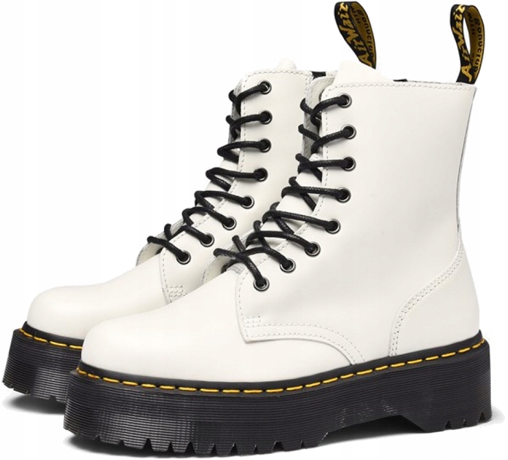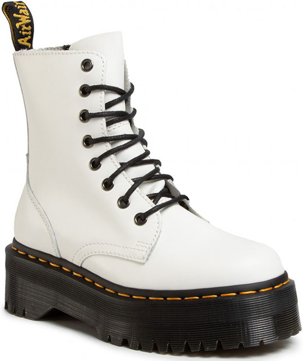 Модель Jadon – це еволюція культового взуття з вісьмома отворами з дуже масивною платформою та міцним протектором Commando, який додасть яскравого акценту будь-якому стилю . Виготовлені з унікальної чорної шкіри, яка відбиває райдужне світло.