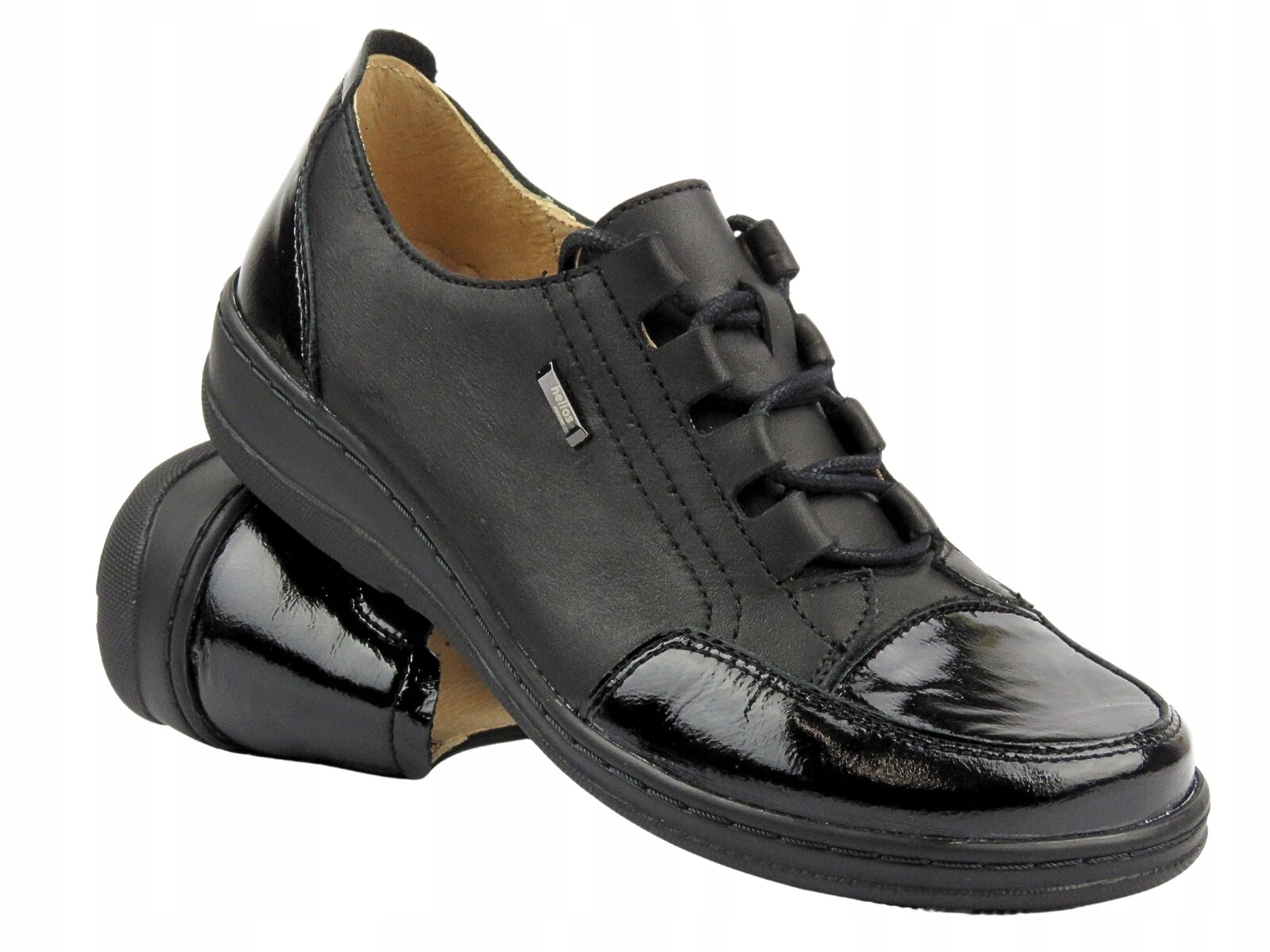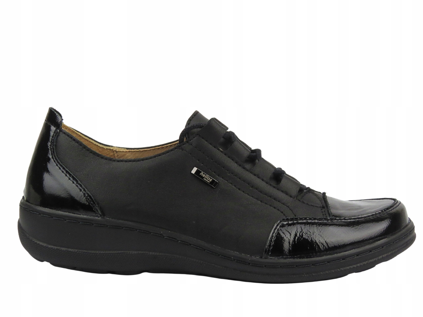 Жіноче взуття оціненої польської марки Helios Comfort виготовлені з високої якості натуральної шкіри у чорному кольорі. Під злегка профільованою вставкою є м'яка піна.