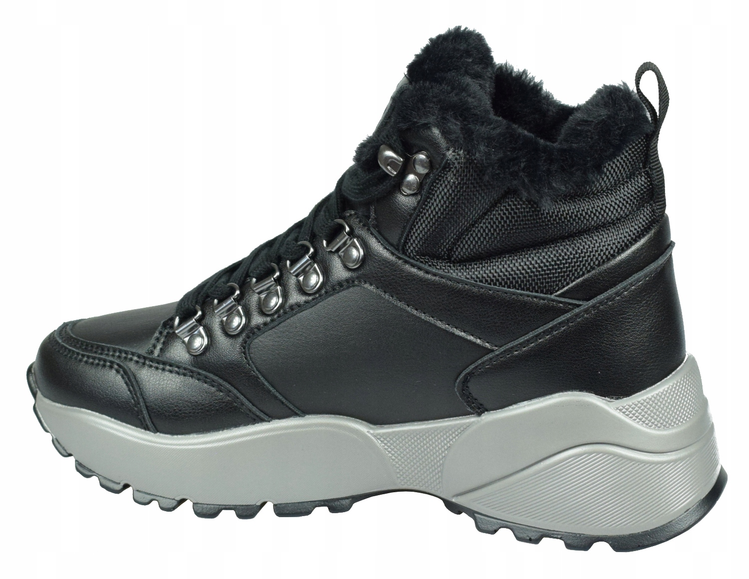 Взуття має утеплювач всередині. Навколо щиколотки верх оброблений м’яким текстильним матеріалом, таким як хутро.