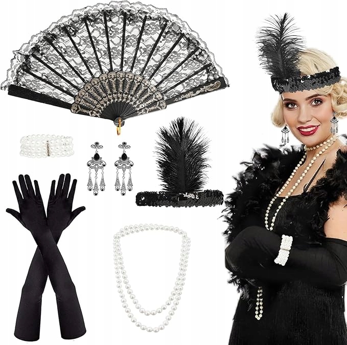 - 1 пов’язка для волосся з пір’ям Гетсбі,