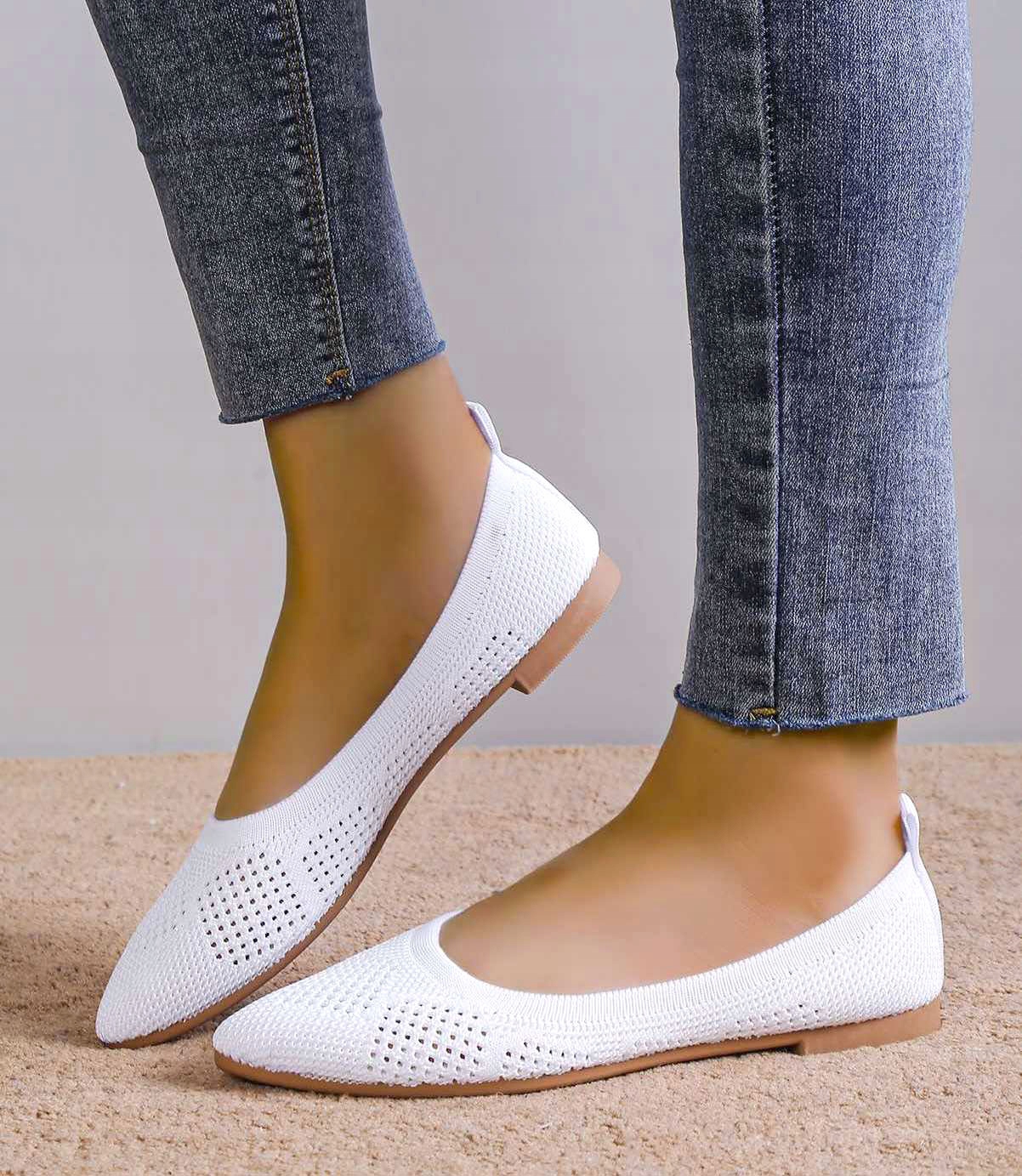 ЖІНОЧІ БАЛЕРІНИ БІЛИЙ МАТЕРІАЛ АЖУРНА ТКАНИНА R40