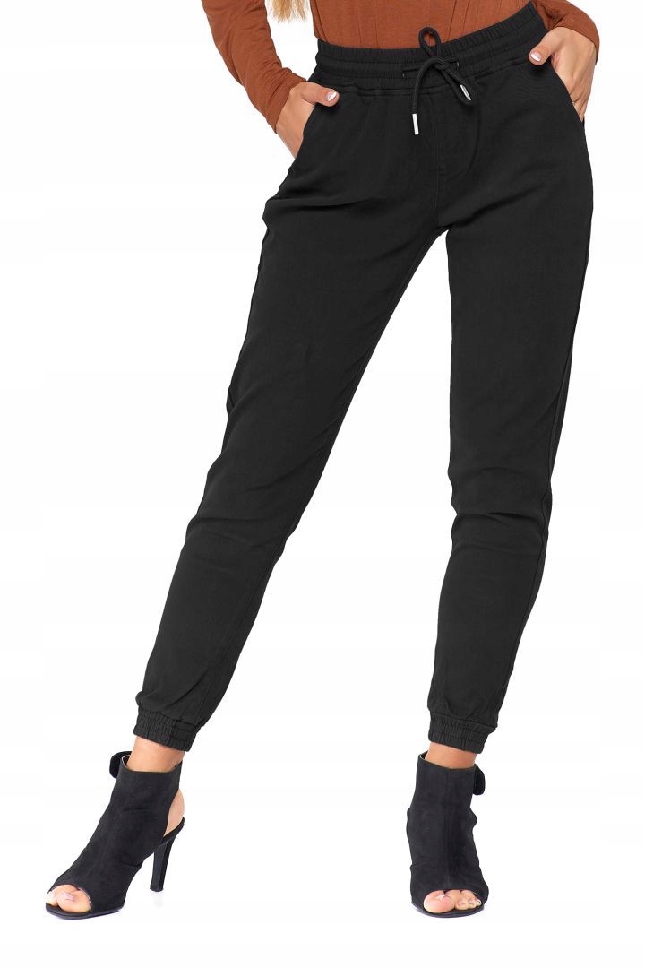 Жіночі джоггери. Вони виготовлені з джинсової тканини. Денім - це не що інше, як назва щільної тканини, з якої шиють найякісніші джинси. Денім характеризується дуже високою міцністю. Ми збагатили тканину домішкою еластану, що покращує її еластичність. Тканина з еластаном краще прилягає до тіла і забезпечує свободу рухів. Джоггери мають злегка вільний крій. На високий рівень комфорту також впливає еластичний пояс і зав’язки, завдяки яким штани можна ще краще підігнати під свою фігуру. Ніжки оброблені манжетом, що не тисне. Модель доступна в темно-синьому та класичному чорному кольорах.