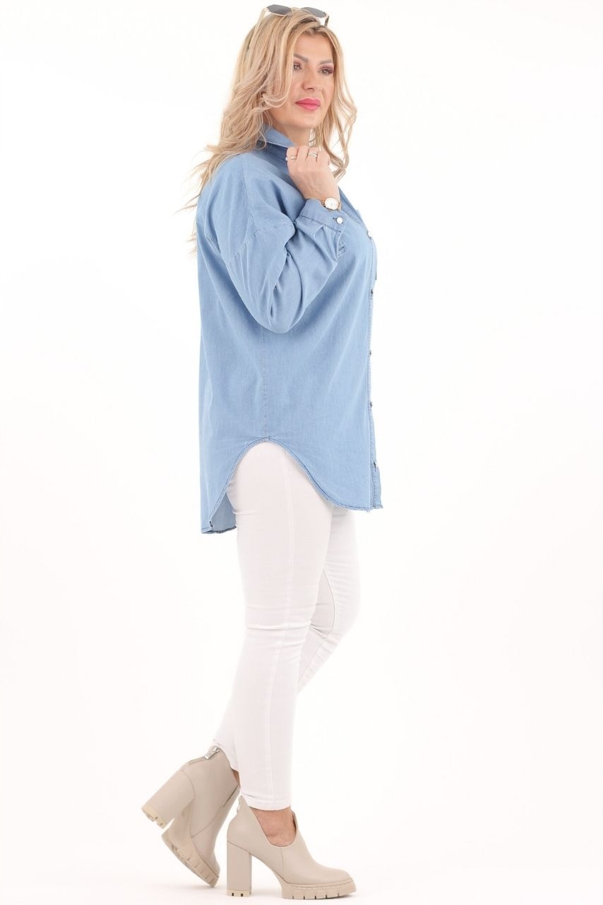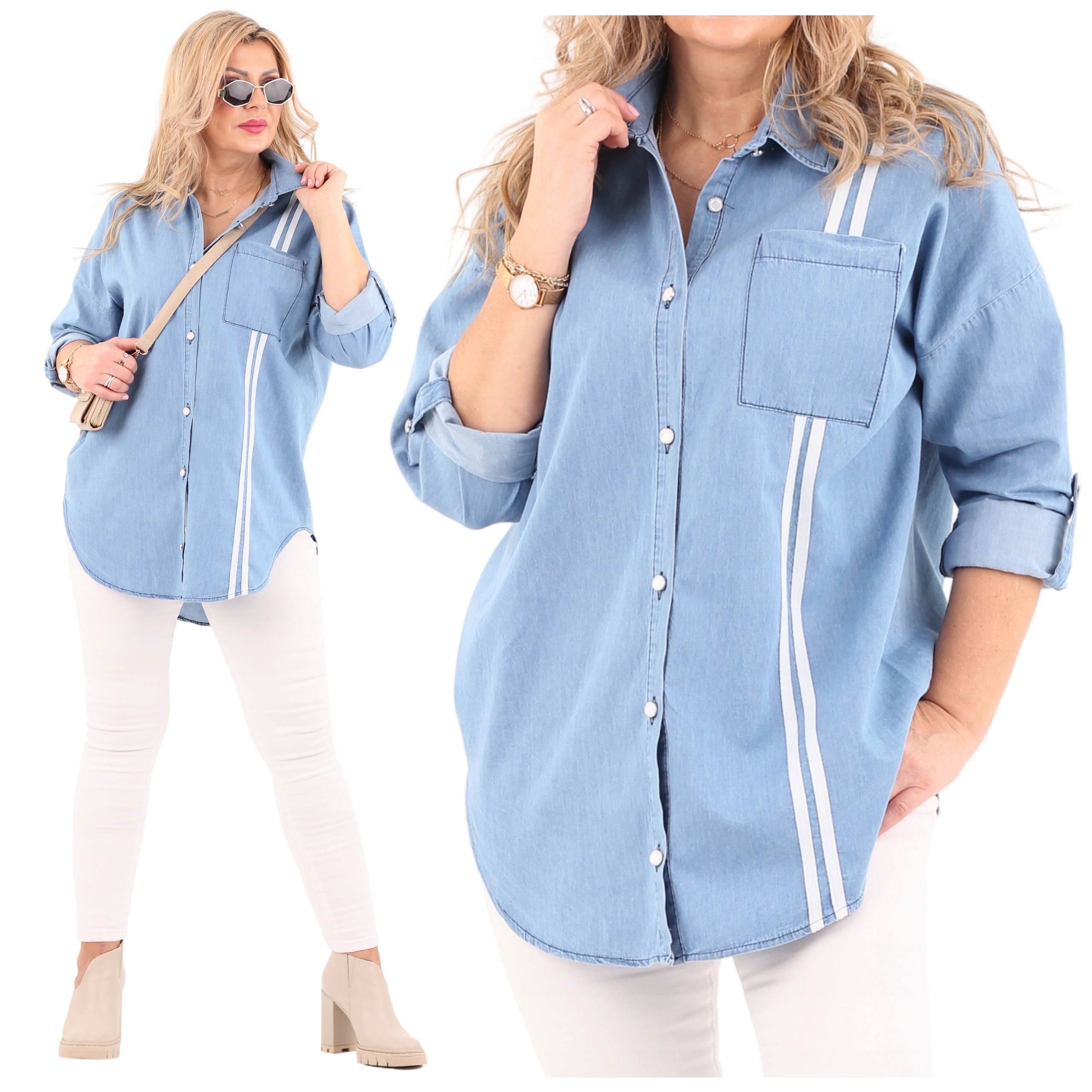 Жіночі бавовняні джинси сорочки великі розміри декоративні смуги великого розміру