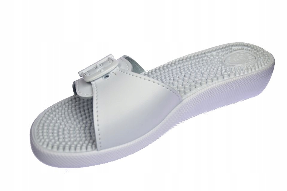 Амортизуюча підошва виготовлена з легкого та делікатного матеріалу, має профільовану устілку з масажними шипами, які стимулюють рецептори на стопі, як під час сеансу точкового масажу, з верхом з еластичного матеріалу для ремінця з пряжка.