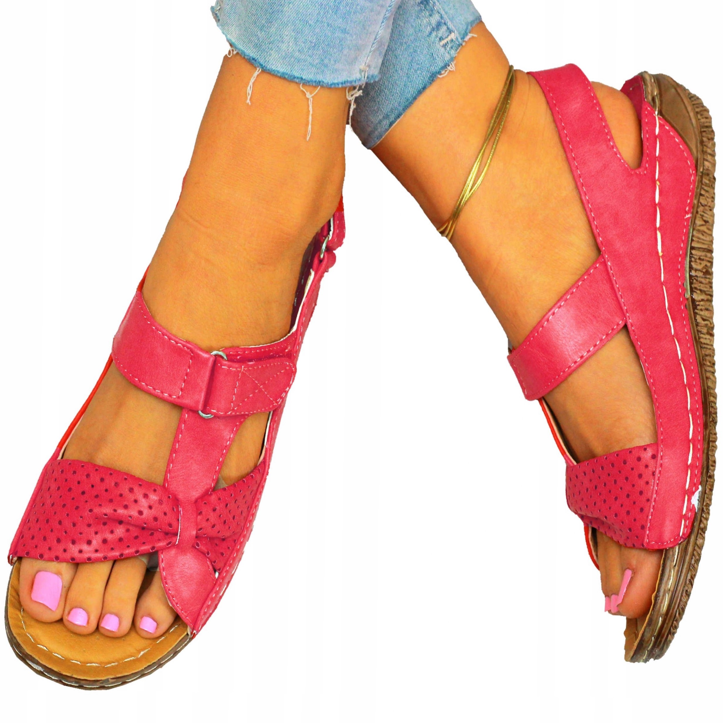 Жіночі босоніжки, зручні з липучкою, елегантно пришиті