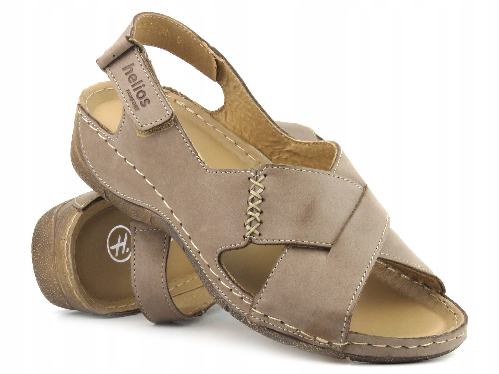 Жіночі босоніжки оціненої польської марки Helios Comfort були виготовлені з високої якості натуральної шкіри у бежеві. Під вставкою є м’яка м’яка піна .