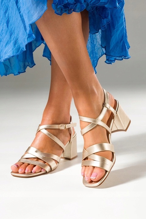 Жіночі босоніжки на низькому блоці SK067 Елегантне золото