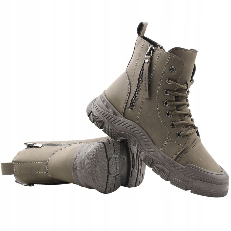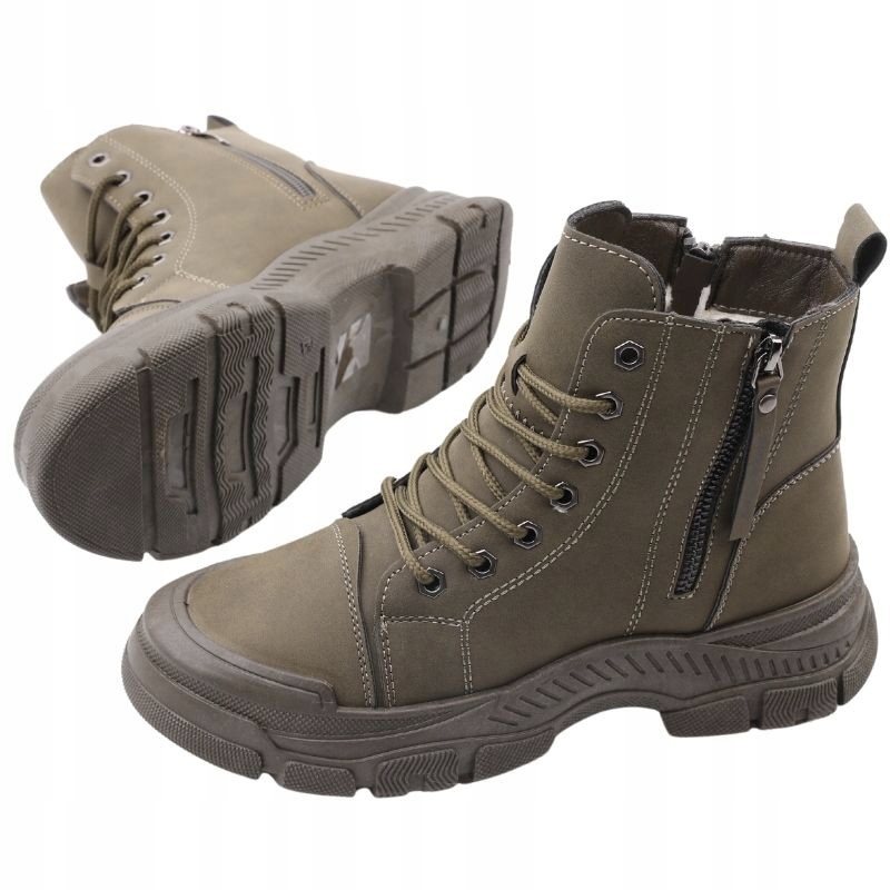 чоботи на дуже масивній підошві з захисником. Зроблено з синтетичного нубука. Невелика петля на спині. На передній частині є зв'язування на шнурках. Круглі носи. Утеплений. Вам подобаються непохитні рішення? Ці захоплюючі підкреслюють вашого персонажа. Фантастично з джинсами та вантажними штанами.