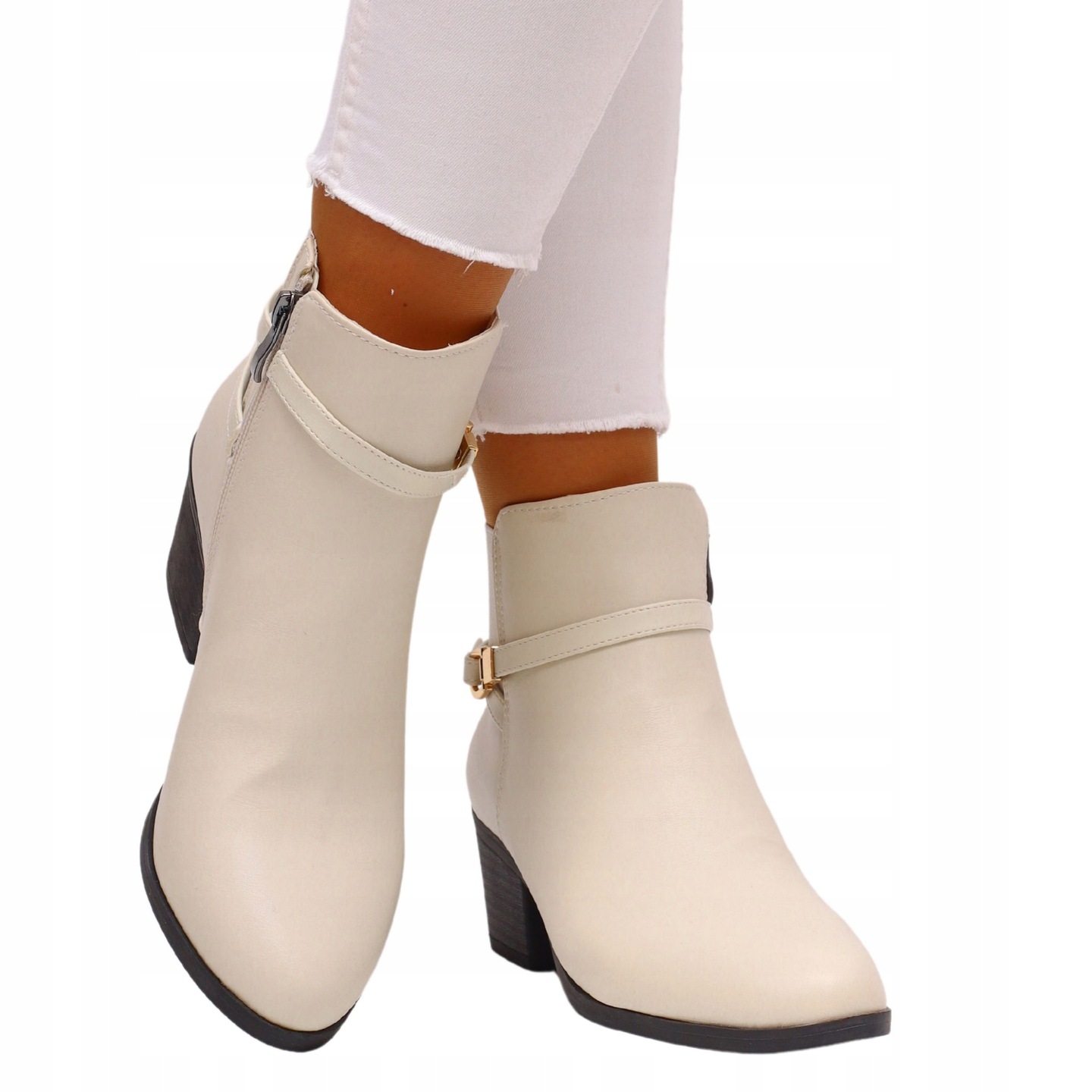 Жіночі бежеві черевики. Вони мають застібку на блискавці, що дозволяє легко надіти. Стабільна, густа підошва добре поглинає стопу. Простий виріз робить їх збігатися з багатьма стилями. Підошва