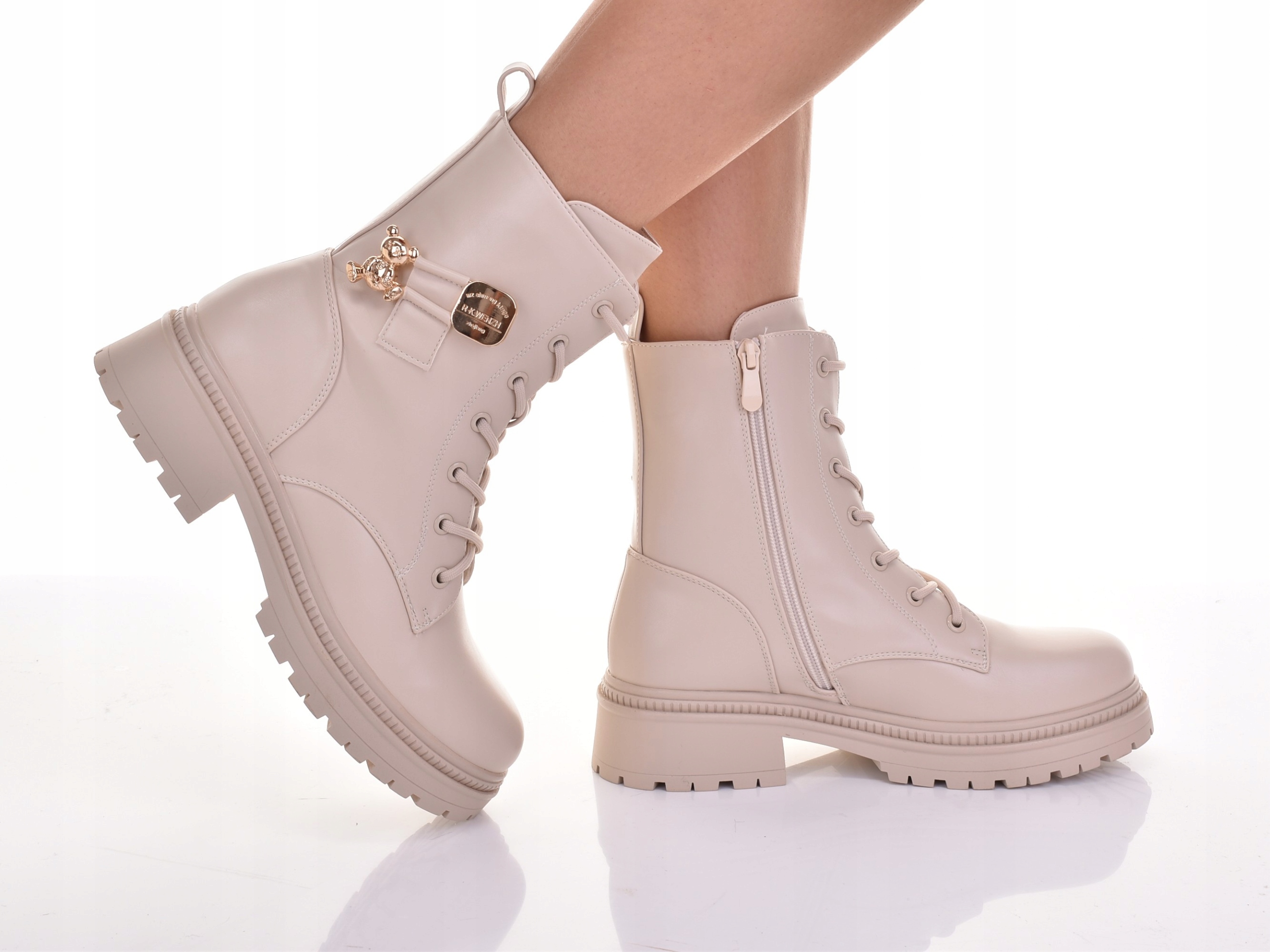ЖІНОЧІ ЧОБОТИНКИ НА ПЛОСКІЙ ПЛАСТИНІ, УТЕПЛЕНІ ТРАПЕРИ НА БЛИСКАВЦІ, БЕЖЕВІ