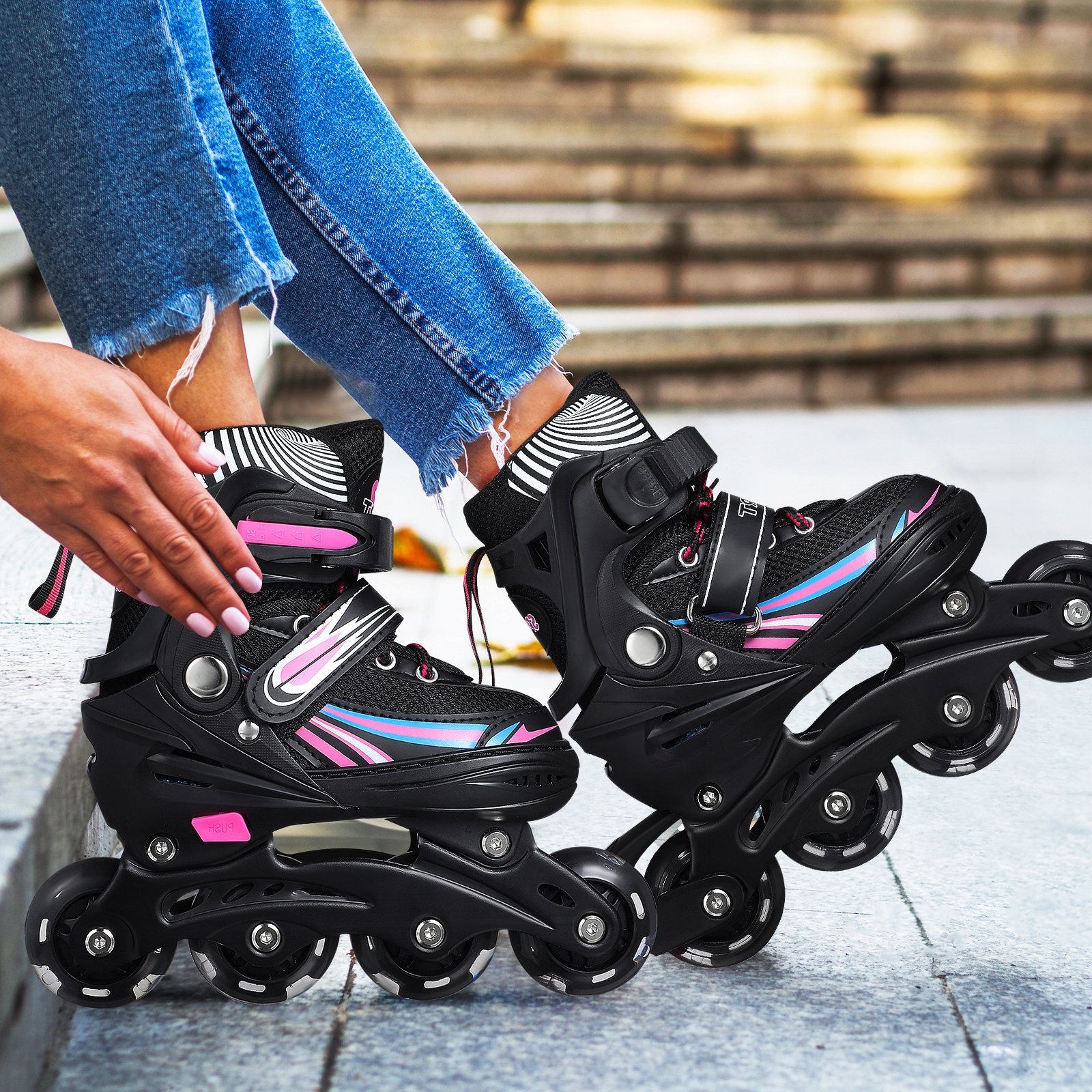 Від занять фітнесом до катання на роликових ковзанах, ці регульовані роликові ковзани — ваш вибір завдяки комфорту, довговічності та стилю. Візьміть під контроль свою поїздку та зробіть кожну поїздку плавною, стабільною та приємною! 🛼🎯🌆