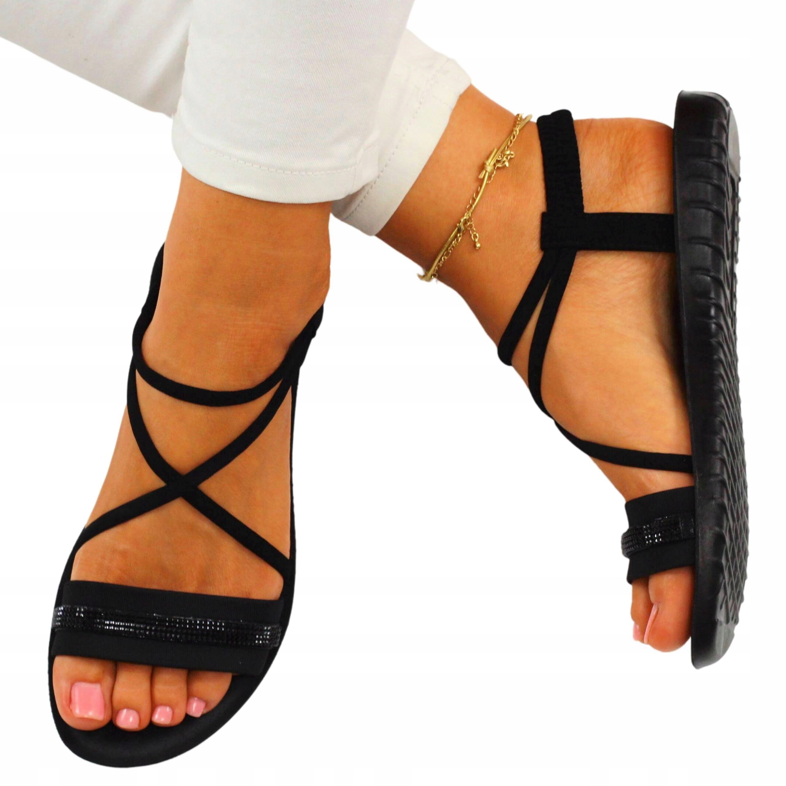 Жіночі чорні босоніжки з рівним низом. Вони ідеально підходять як повсякденне взуття в спекотні літні дні. Простий дизайн також підійде до елегантних стилів, а декоративні кристали додадуть шарму багатьом стилям. Еластичний ремінець на п'яті полегшує взування та підгонку взуття до стопи.