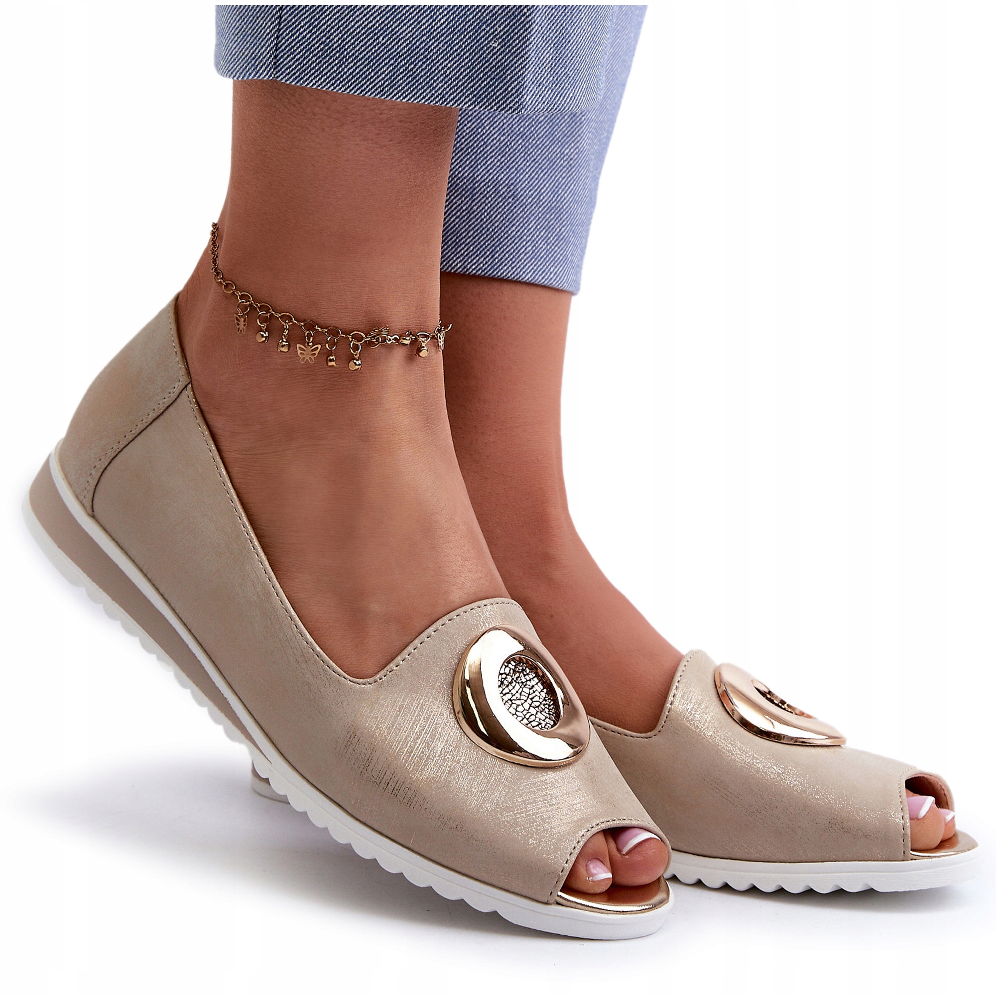 ЖІНОЧІ ЧУФЛІ З ДЕКОРАЦІЄЮ З ЕКО ШКІРИ, ЗОЛОТО 38