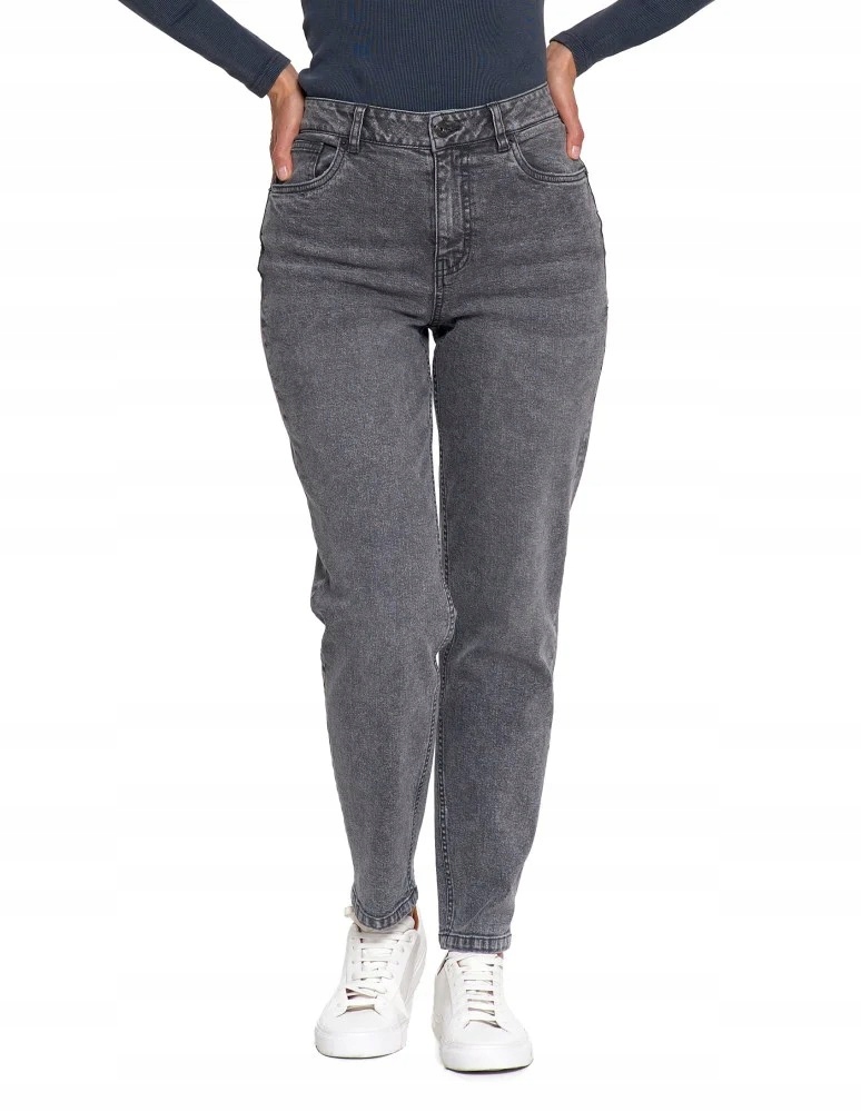 Ці жіночі джинси Mom FIT — це поєднання класичного стилю та комфорту. Виготовлені з високоякісної бавовни з додаванням еластану, вони не тільки забезпечують комфорт при носінні, а й м'яко прилягають до фігури. Крій mom fit характеризується більш вільними штанинами, які звужуються донизу, підкреслюючи талію та надаючи фігурі стильності. Штани мають 5 функціональних кишень, в тому числі невелику кишеню для дрібниць, так звану монетницю. Застібка-блискавка забезпечує легке надягання та знімання, а їх класична, трохи завищена талія ідеально вписується в модні тенденції. Матеріал бавовна і еластан робить штани не тільки міцними, але й гнучкими, що підвищує комфорт повсякденного носіння. Чудово поєднуються як з повсякденними стилями з футболками або светрами, так і з більш елегантними комплектами з сорочкою.