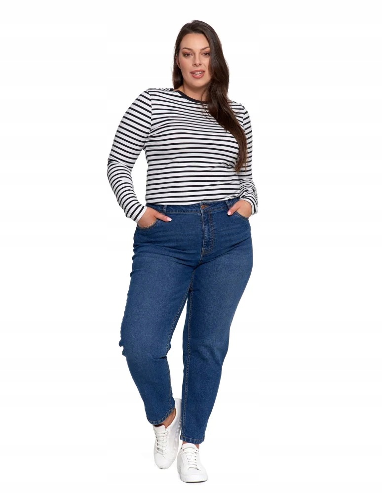 Ці жіночі джинси Mom FIT поєднують класичний стиль і комфорт. Виготовлені з високоякісної бавовни з додаванням еластану, вони не тільки забезпечують комфорт при носінні, а й м'яко прилягають до фігури. Крій mom fit характеризується більш вільними штанинами, які звужуються донизу, підкреслюючи талію та надаючи фігурі стильності. Штани мають 5 функціональних кишень, в тому числі невелику кишеню для дрібниць, так звану монетницю. Застібка-блискавка забезпечує легке надягання та знімання, а їх класична, трохи завищена талія ідеально вписується в модні тенденції. Матеріал бавовна і еластан робить штани не тільки міцними, але й гнучкими, що підвищує комфорт повсякденного носіння. Чудово поєднуються як з повсякденними стилями з футболками або светрами, так і з більш елегантними комплектами з сорочкою.