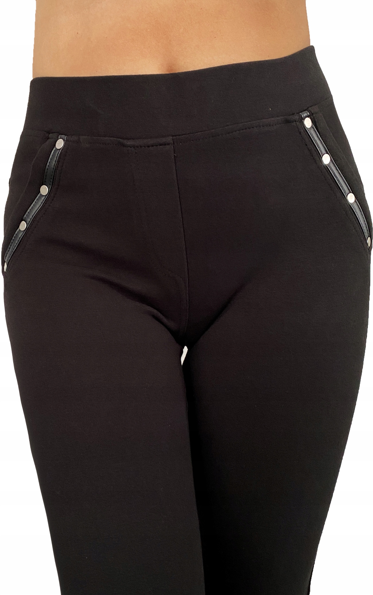 ✅Штани мають стильні імітаційні кишені спереду з обробкою з екошкіри , клапан, що імітує мушку, а також спеціальні справжні кишені ззаду, які піднімають попу.