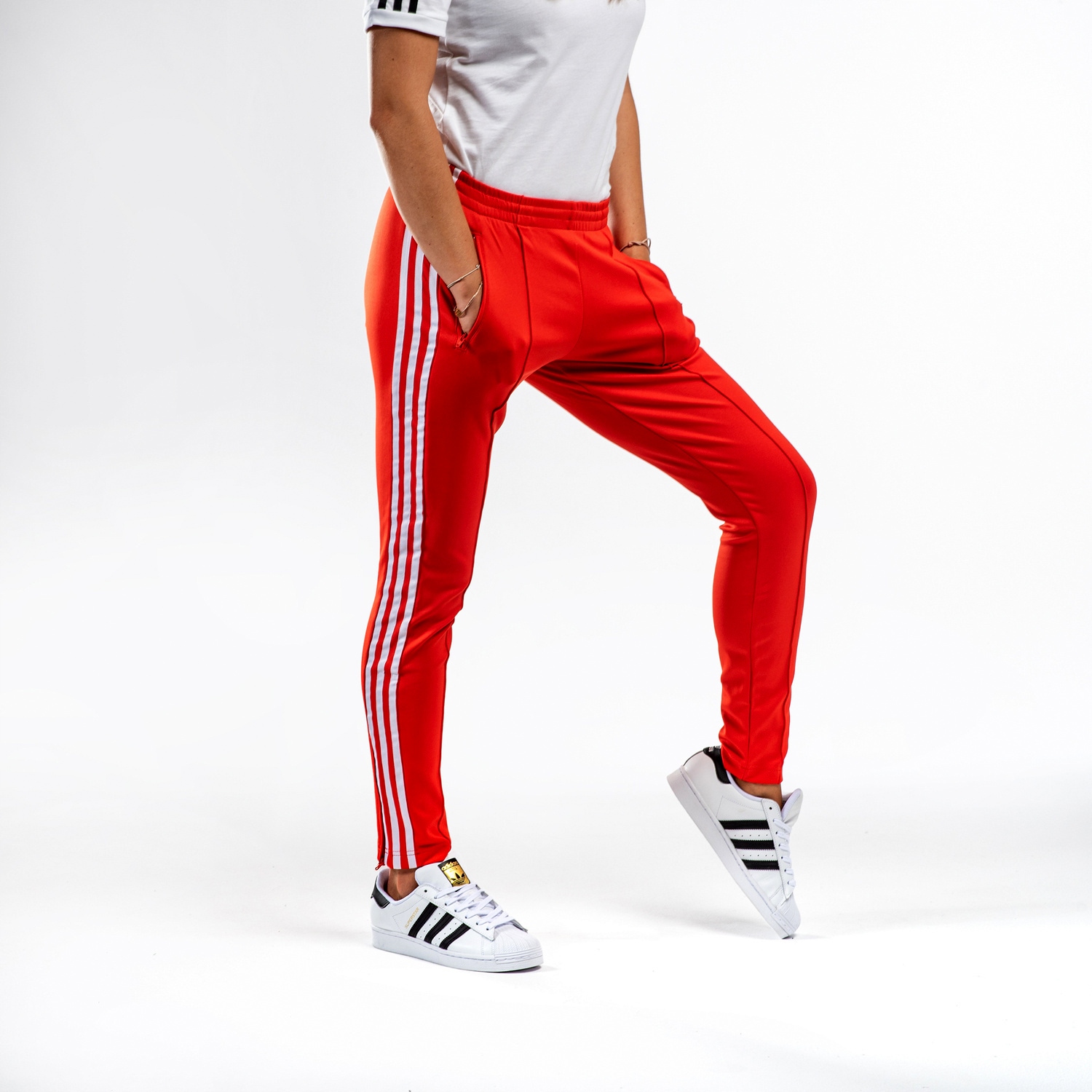 Спортивні штани SST від adidas Originals створять блискучий вуличний образ. Вони тонкого крою зі старовинними швами посередині штанин. Виготовлений із високоякісної суміші бавовни та переробленого поліестеру, він міцний і зручний у носінні. Завдяки додаванню еластану в матеріал і еластичному поясу зі шнурком для регулювання. У бічних кишенях на блискавці можна зберігати дрібниці або зігріти руки. Логотип Trifoil не міг бути відсутнім на передній частині та три фірмові смуги Adidas з боків на штанинах.