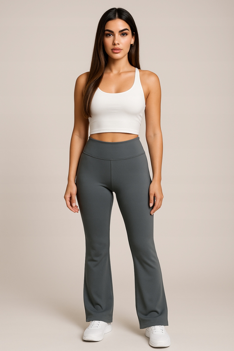 темно -сірі гетри з дзвониною ногою - це чудовий вибір для жінок, які хочуть поєднати комфорт з елегантністю у спортивному стилі.