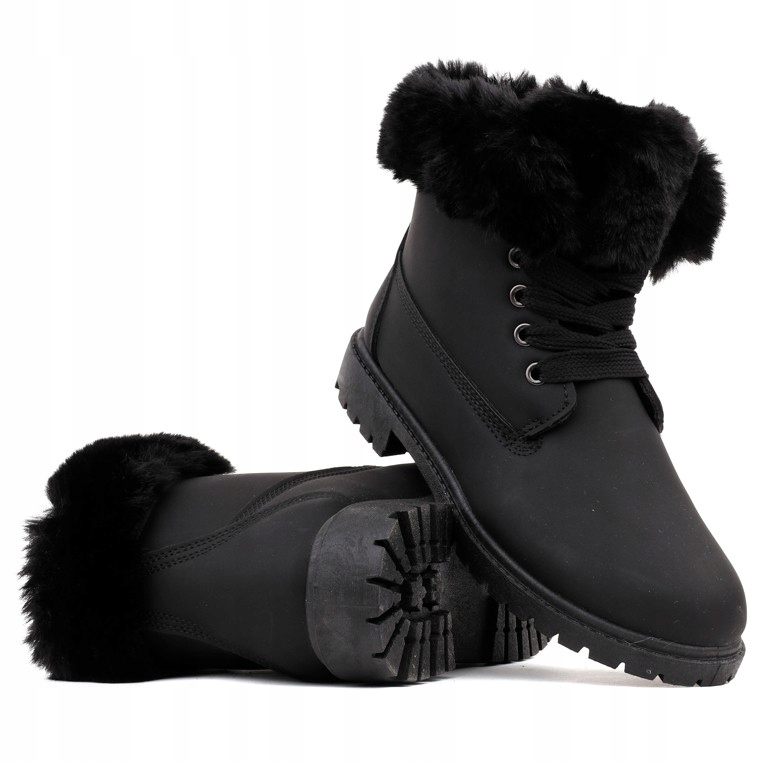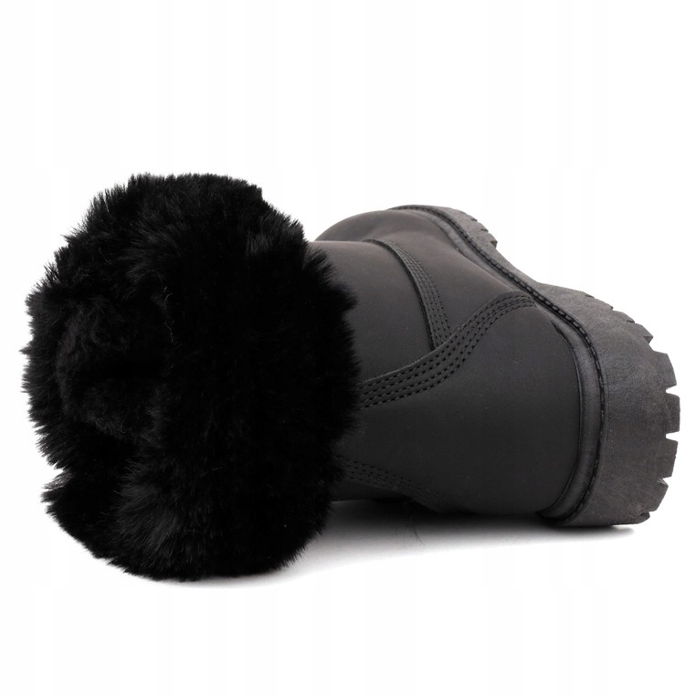 Жіночі піші прогулянки, на п'яті в п'яті, тягнучись до щиколотки. Заслужений, ізольований зсередини з наслідуванням хутра. Язик взуття і верхня частина верхньої частини прикрашає м'який подол. Вони зроблені з синтетичного нубука. Щоденний набір буде красиво доповнений.