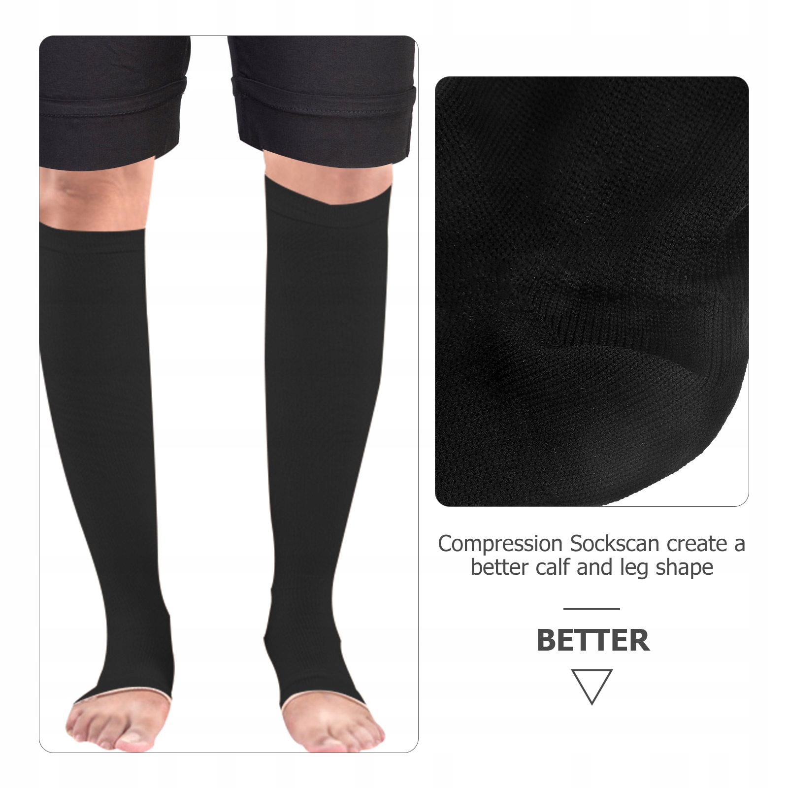 Ці компресійні панчохи для литок можуть ефективно сприяти кровообігу та допомагати зменшити втому ніг, біль у стопах і набряки щиколоток. Компресійні панчохи ідеально прилягають до ніг і стоп, мають більшу гнучкість і регульований простір, їх легко надягати і знімати.
