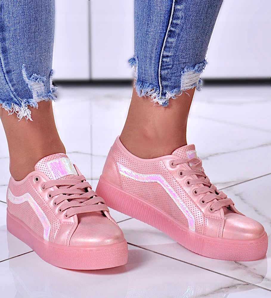 - Весняні жіночі снікерси з екологічної шкіри рожевого кольору.