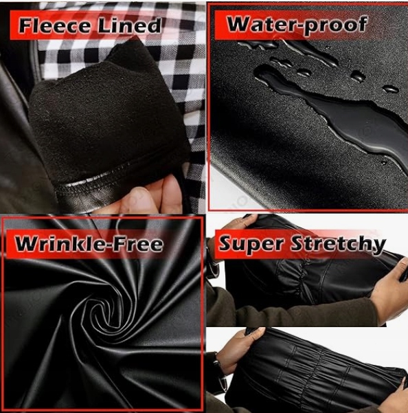 Матеріал дуже гнучкий, м'який, непрозорий, міцний і на дотик схожий на другу шкіру. Зсередини легінси, що імітують шкіру, обшиті м'яким шаром матеріалу. Завдяки легкій підкладці та 4-сторонній еластичності легінси забезпечують суперкомфорт. Ідеальний варіант на цілий рік.