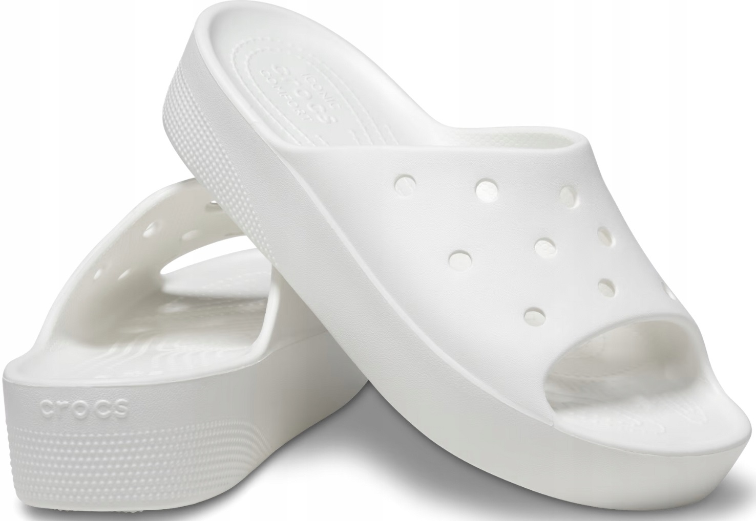 Насолоджуйтесь стильною оновленою версією наших класичних шльопанків Crocs. Тепер також доступний на платформі. Крім того, отвори у верхній частині дозволяють персоналізувати за допомогою шпильок Jibbitz™. Класична піна Croslite™ амортизує кожен крок і робить їх легкими та зручними.