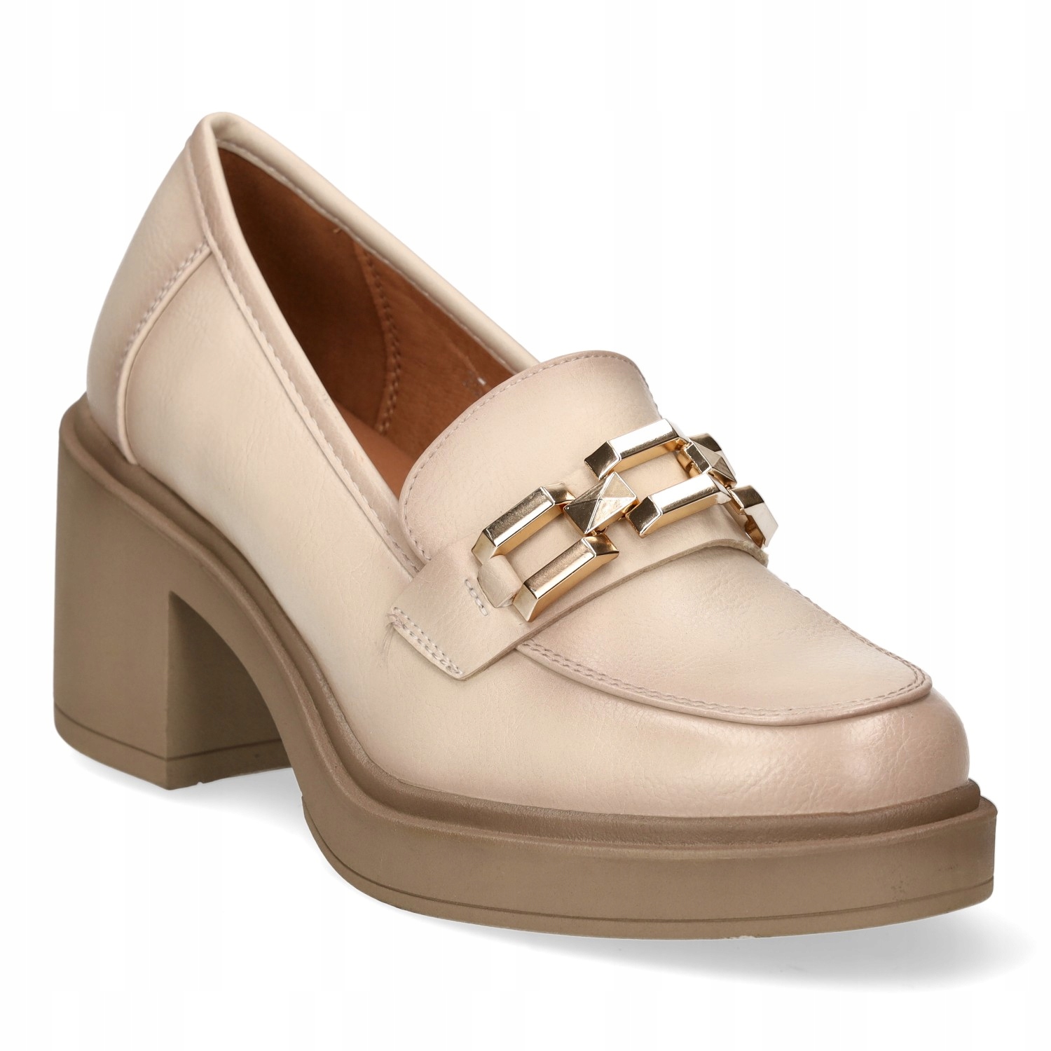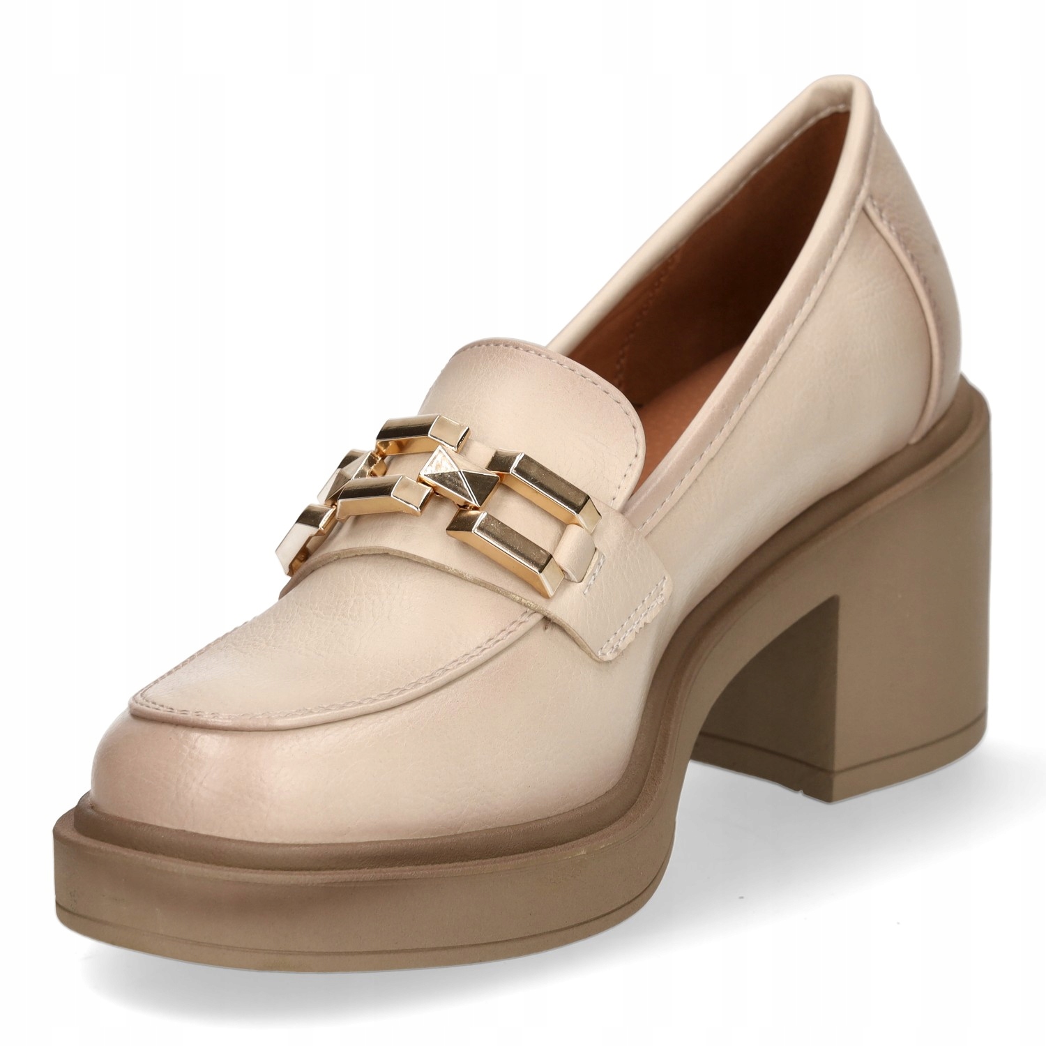 ЖІНОЧІ ЛОФЕРИ НА МАСИВНОМУ КАБЛУКУ VINCEZA БЕЖЕВІ 37 р.