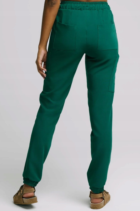 Їх відрізняють прямі штанини, які не сковують рухів. Додатково зручні манжети на ніжках. Мають шість кишень і одну меншу зліва, резинку і шнурок на талії. Функціональні кишені мають косу форму, завдяки чому красиво обтягують ноги, і при цьому вони досить великі, щоб легко помістити стетоскоп або смартфон. Кожна кишеня закріплена спеціальними болтами, які витримають багаторазове прання та не пропустять багато речей у кишенях.