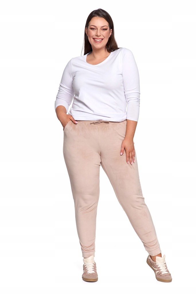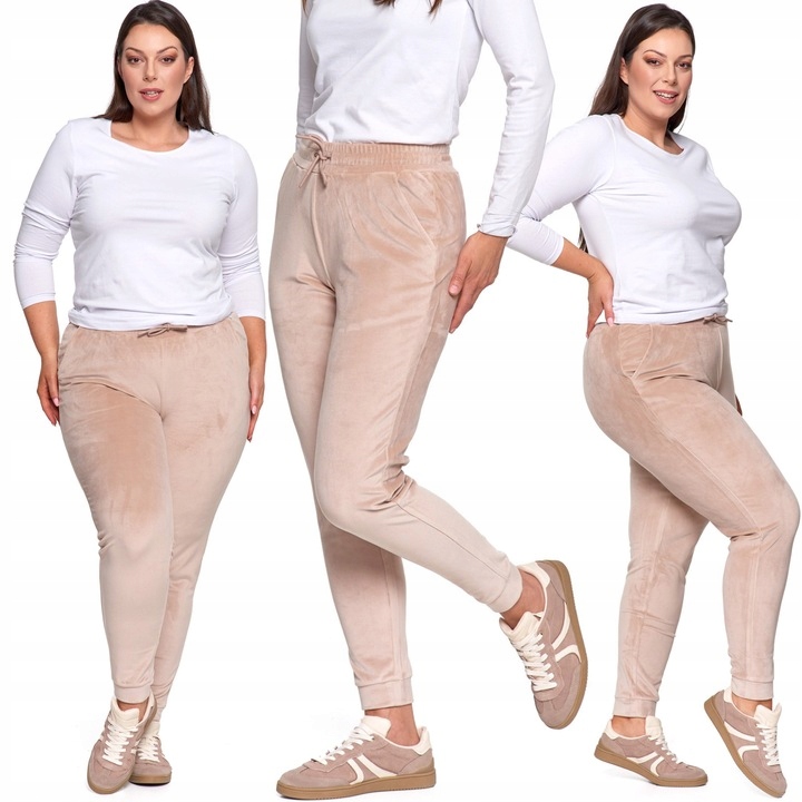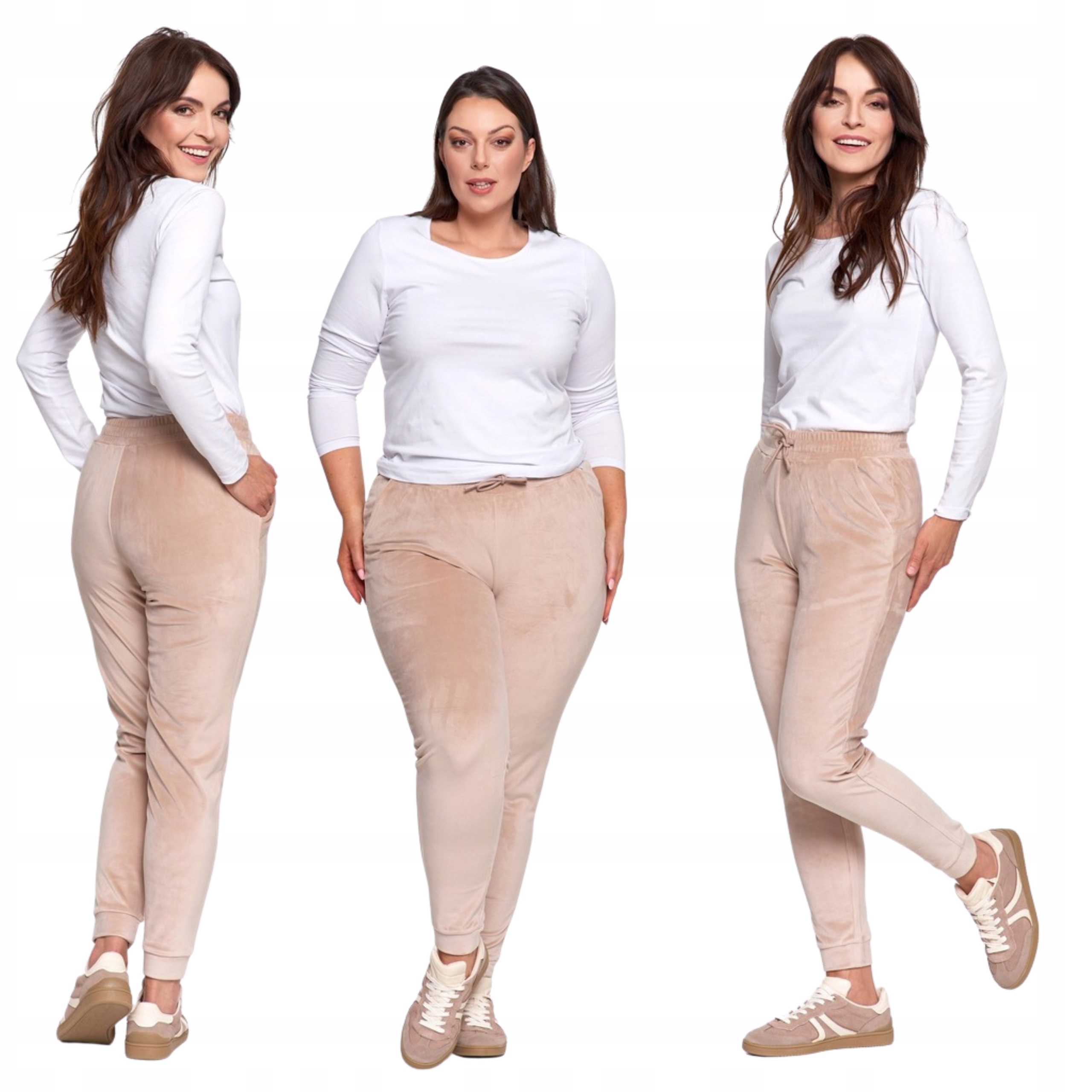 ЖІНОЧІ ОКСАМИТОВІ СПОРТІВНІ ШТАНИ MORAJ З ВИСОКОЮ ТАЛІЄЮ КОМФОРТНІ БЕЖЕВІ L