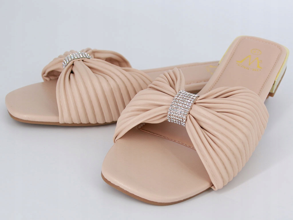 Жіночі прикрашені шльопанці з еко -шкіряними цирконами бежевих літніх взуття 42