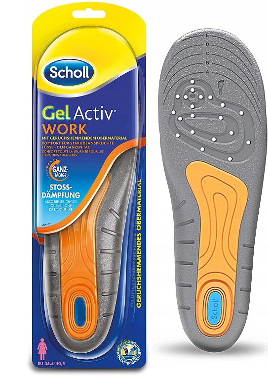 Устілки Scholl GelActiv Work досліджено та розроблено за консультації з фахівці по догляду за стопами і підходять для тих, хто багато годин проводить на роботі. Вони сумісні з анатомічною формою стопи людини та дуже добре адаптуються до основних типів робочого взуття, включаючи захисне взуття.