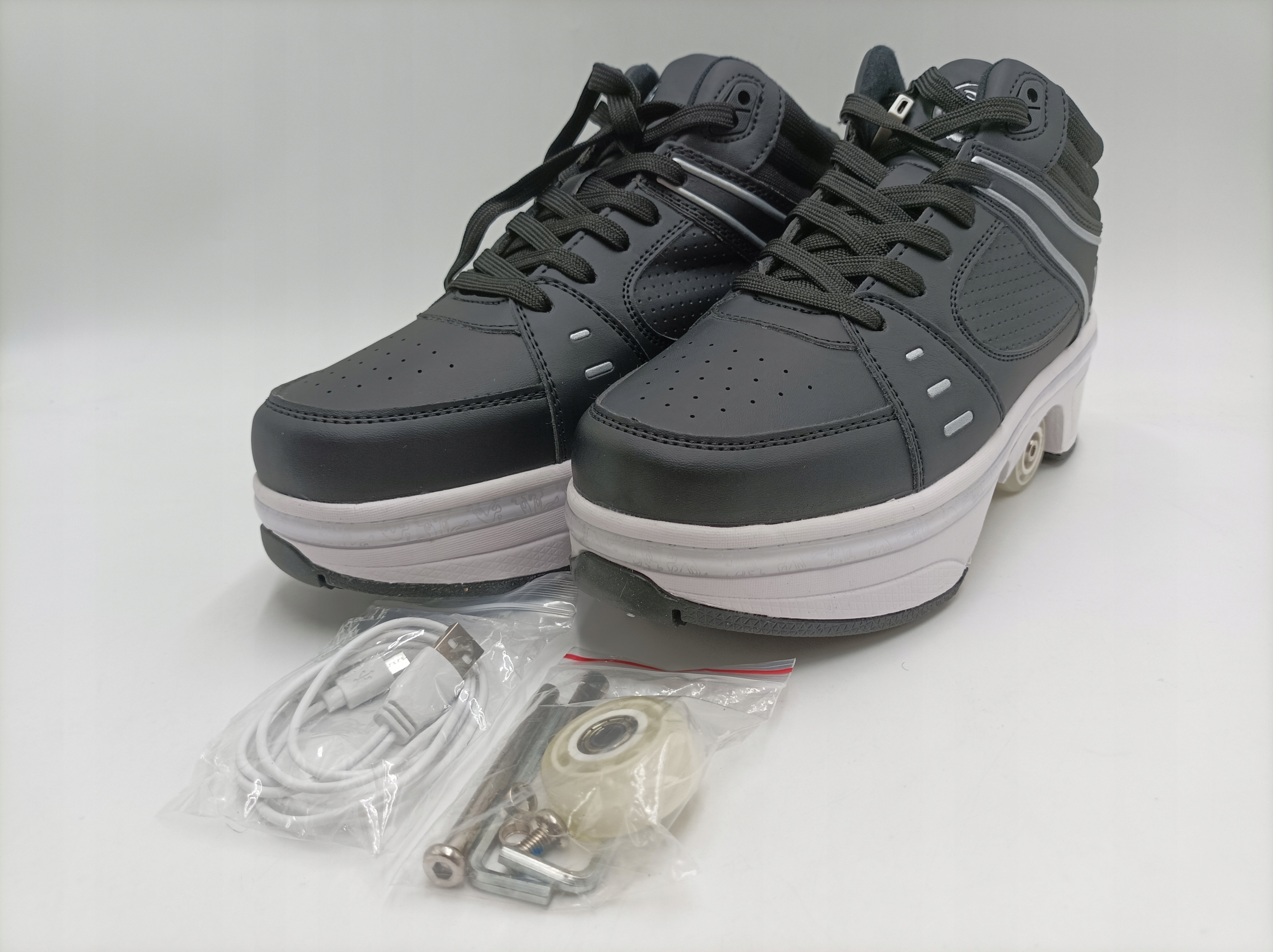 - Міцні колеса. Взуття оснащено 4 твердими колесами, виготовленими з міцного та формованого поліуретану (PU), що забезпечує безпечне та надійне водіння.