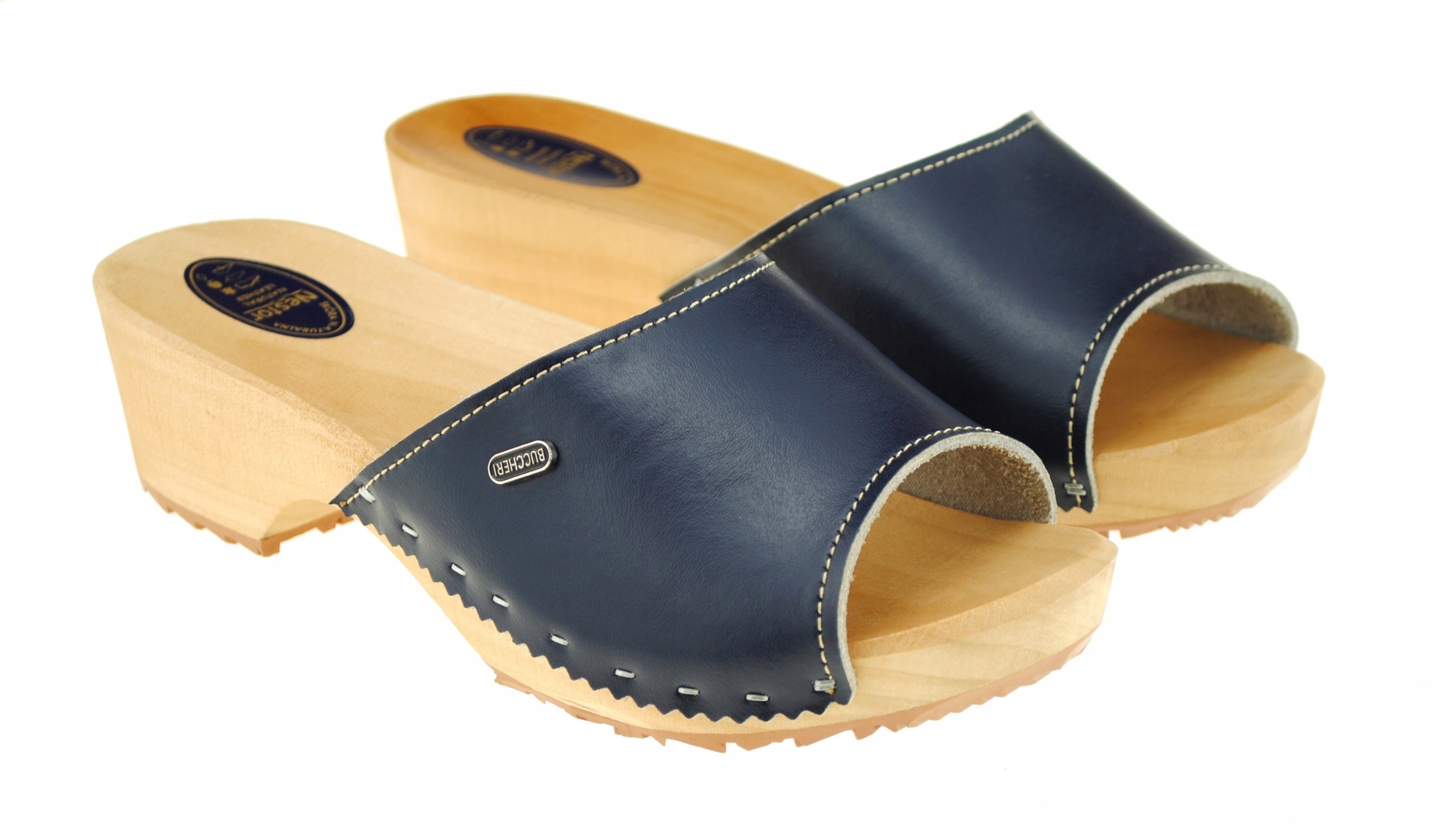 Жіночі відкриті сабо з дерева вільхи та міцної ламінованої шкіри. Ретельно підібрані матеріали забезпечують оригінальний зовнішній вигляд і довговічність. Точна вишукана підошва робить сабо дуже легкими.