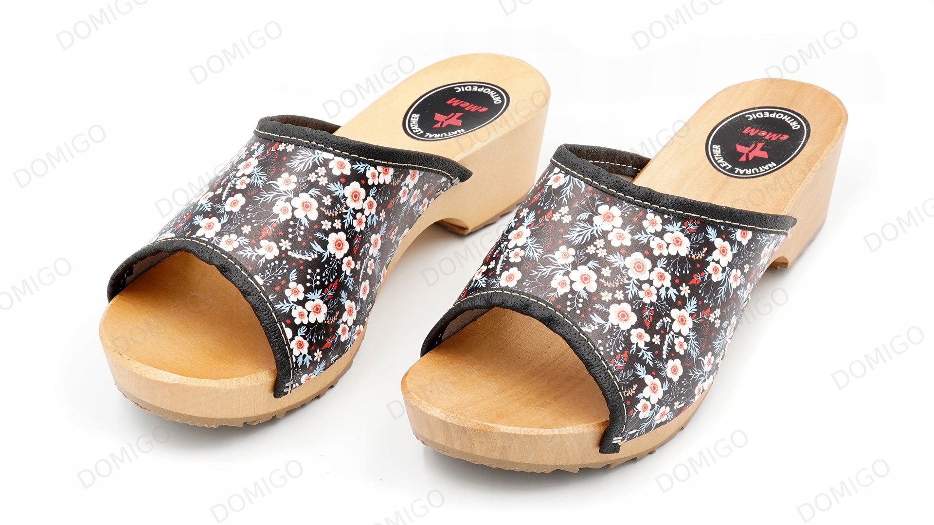 Оригінальні польські ортопедичні засмічення ідеально адаптуються до стопи та забезпечують комфорт обіду. Гладка поверхня деревини альдер та верхній шар натуральної шкіри впливають на гарне положення стопи і запобігають надмірному потовиділенні стоп. Підошва, виготовлена з поліуретану, забезпечує адекватну подушку і викликає, що ця деревина є анти -ковзанкою та стійкою до стирання.