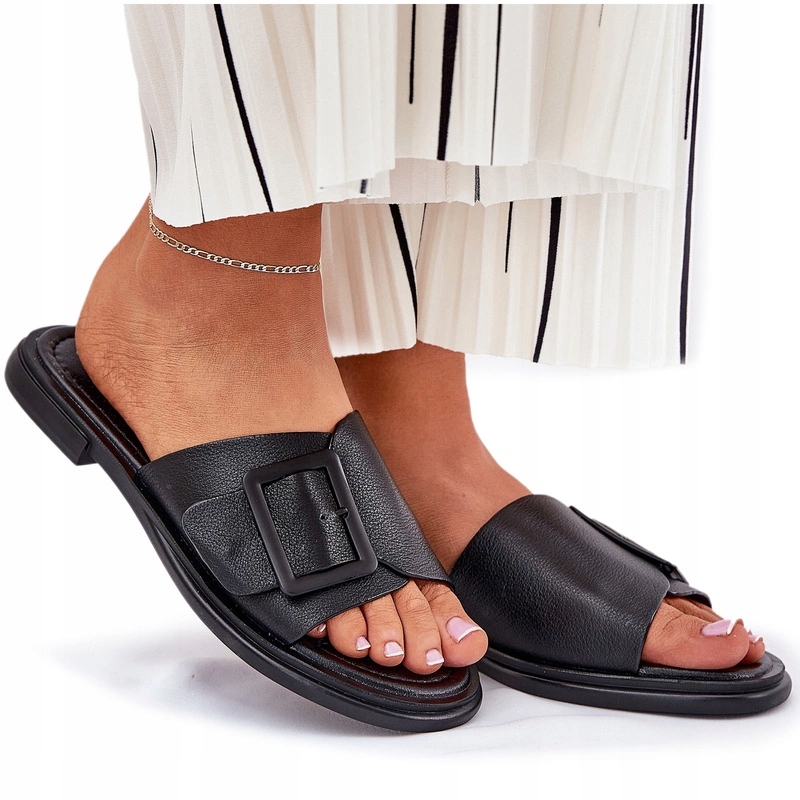 Елегантні жіночі клаптяни, виготовлені з натуральної шкіри, вбудовані в плоскі підбори, які поєднують комфорт з простим стилем. Велика пряжка спереду, що дає їм унікальний персонаж. Шкіряна устілка забезпечує комфорт протягом усього дня, піклуючись про належну подушку. Ідеально підходить для літніх днів, ці шльопанці будуть ідеальним вибором для повсякденних стилізацій, вводячи їм легкість та витонченість. Вибираючи розмір, запропонуйте таблицю розмірів.