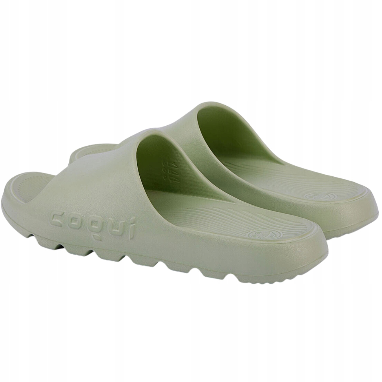 Жіночі шльопанці Coqui дозволять вам насолоджуватися безперебійним комфортом, незалежно від того, відпочиваєте ви в саду, на пляжі або йдете на тренування. Універсальність цієї моделі означає, що її можна використовувати практично в будь-яких умовах. Конструкція з високоякісного матеріалу CoquiAir відповідає за відчуття легкості та надійне відчуття комфорту при носінні. Крім того, він легко чиститься і швидко сохне. Профільована устілка забезпечує правильну стабілізацію взуття на нозі, а антибактеріальні властивості знижують ризик передачі бактерій. Підошва без слідів поглинає удари, допомагаючи захистити суглоби та хребет. Чіпкий протектор забезпечує безпеку при русі по слизькій поверхні. Жіночі тапочки зеленого кольору від Coqui - must have для всіх любителів функціональних рішень.