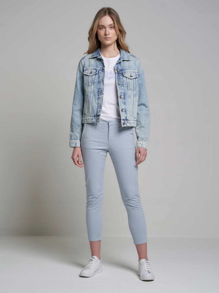 Ви шукаєте жіночі брюки, які ідеально підійдуть для елегантного стилю, а також ідеально підійдуть для щоденного використання? Ця модель від бренду BIG STAR вас точно порадує. Приталений крій із звуженою штаниною вище щиколотки ідеально підкреслює фігуру, а матеріал робить цей крій одягається як друга шкіра. Додатковою перевагою є звичайна талія і застібка на гачок, що дозволяє поєднувати ці штани як з обтягуючими, так і з оверсайз топами. Також варто звернути увагу на унікальний, світло-блакитний колір, який є найкращою альтернативою класичному білому або сірому.