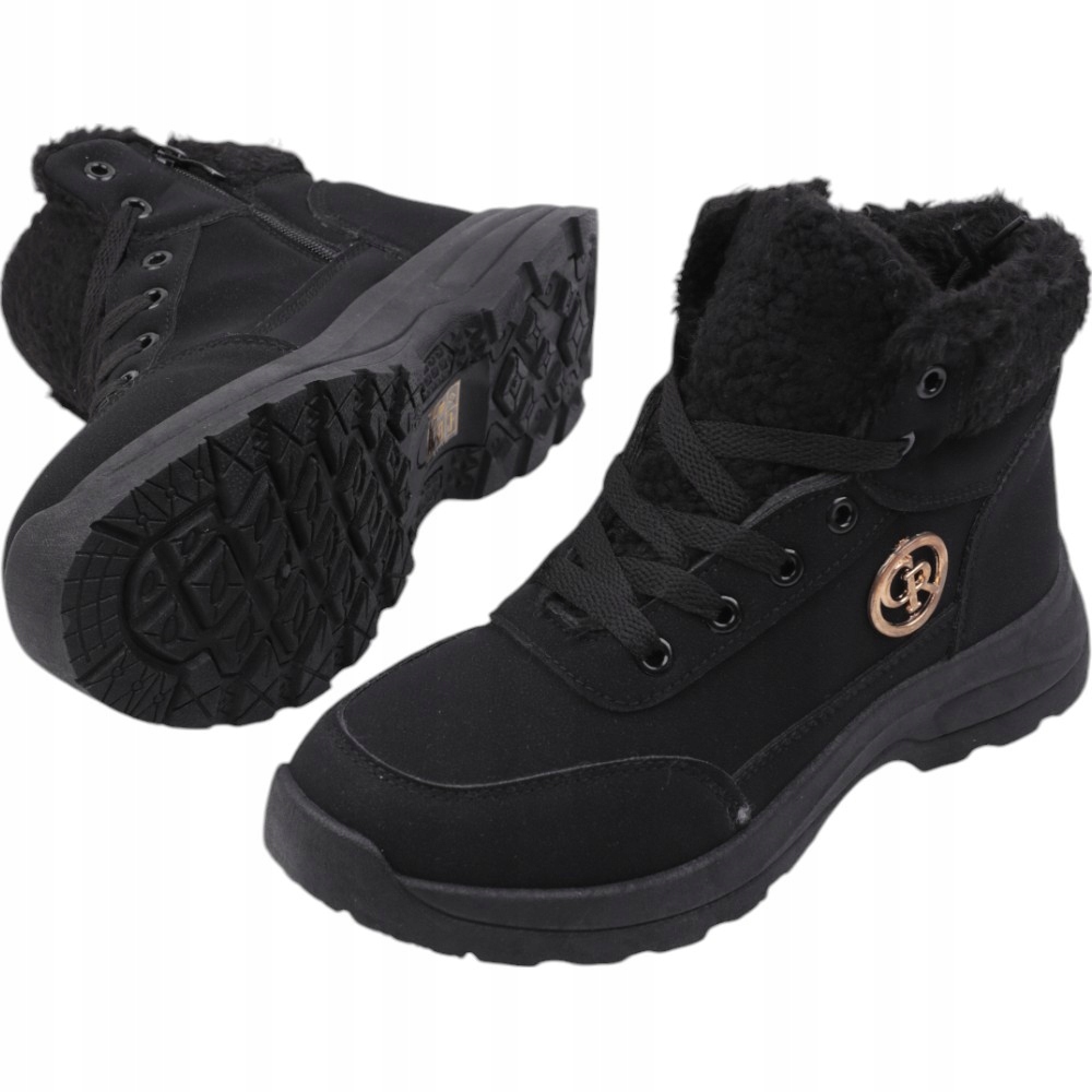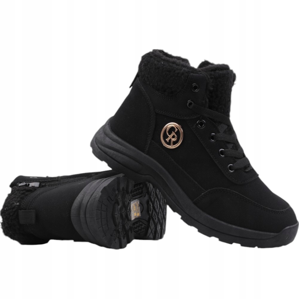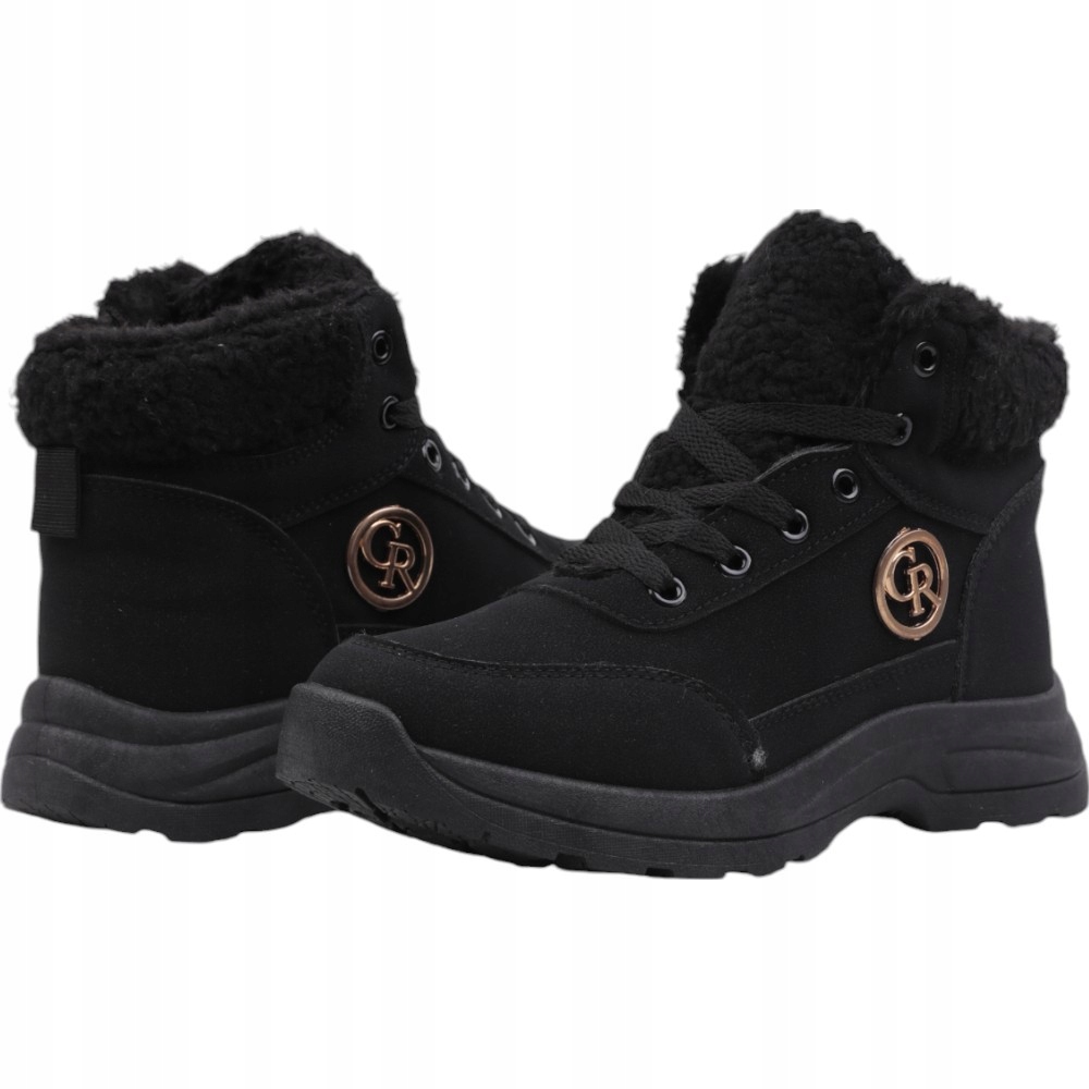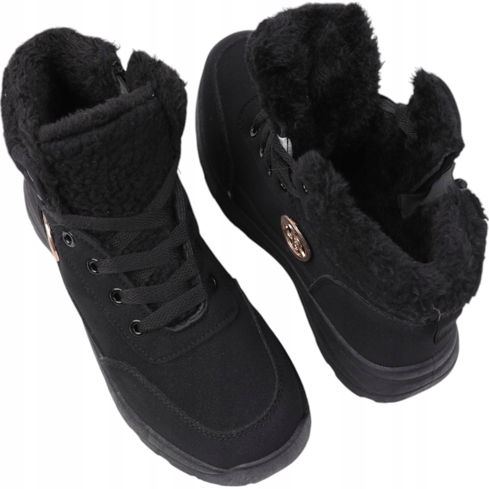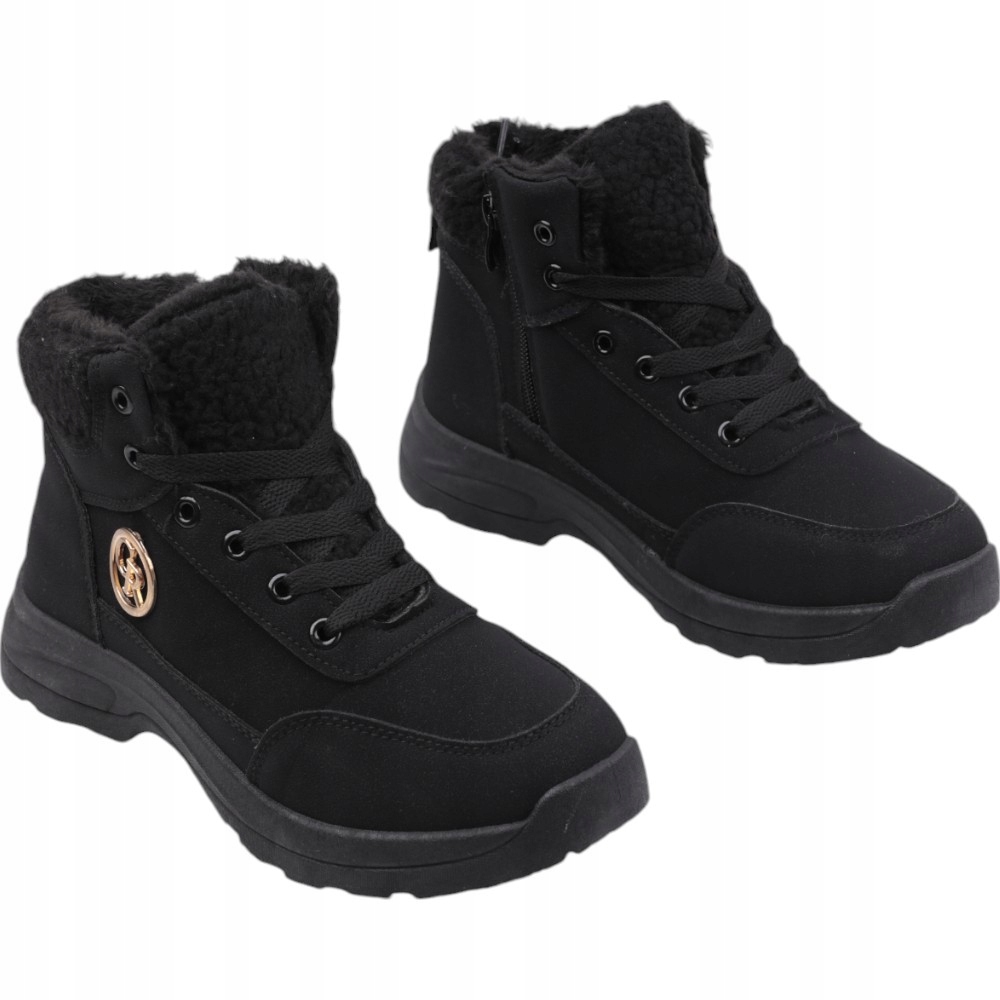 Снігові черевики, жіночі пішохідні черевики на плоскій підошві. Верхній з синтетичного нубука. Хутро навколо щиколотки. Збоку верхньої, прикрашеної золотим елементом. Утеплений. Ці стильні черевики добре поєднуються з стьобаною курткою.