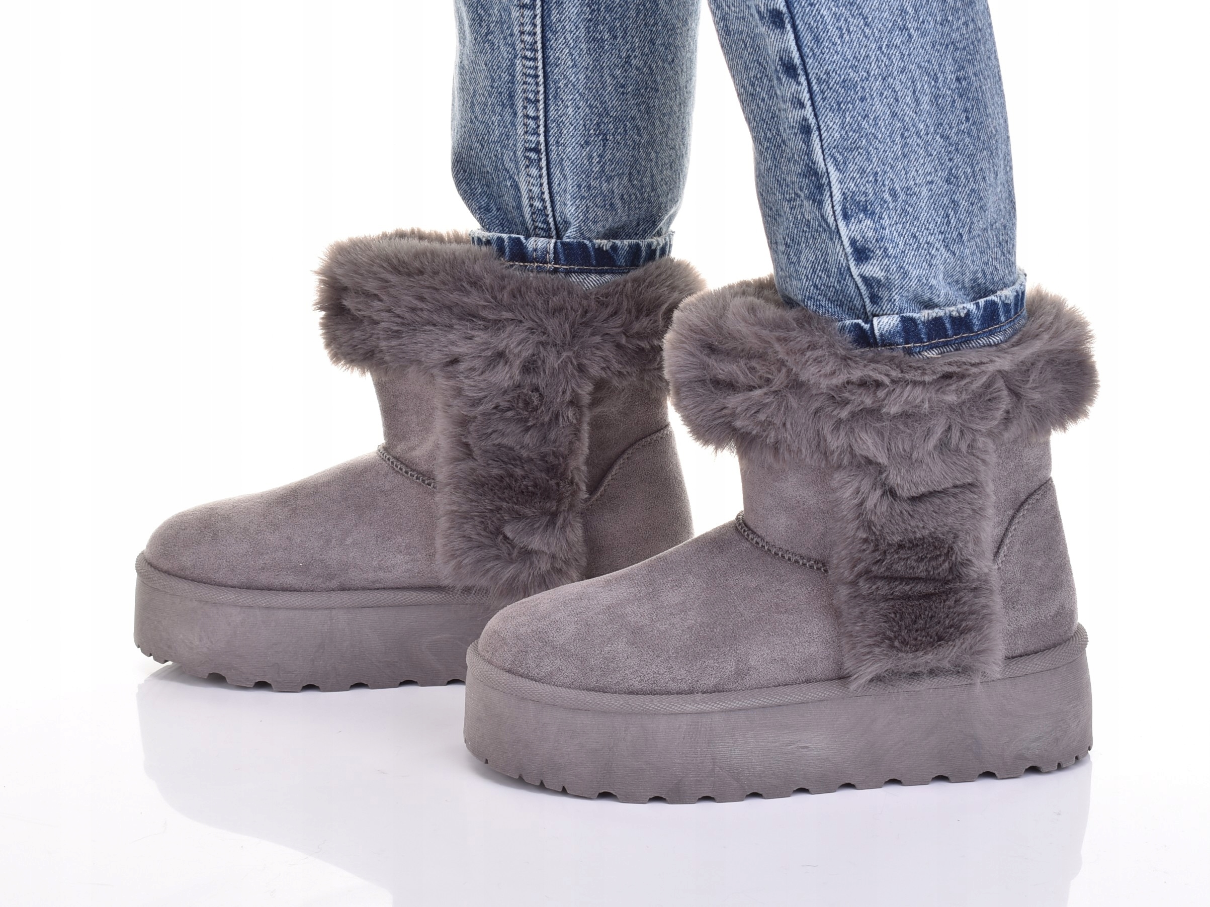 ЖІНОЧІ СНІЖНІ ЧОБОТИНКИ, УТЕПЛЕНІ, ЗИМОВЕ ВЗУТТЯ НА ПЛАТФОРМІ З ХУТРОМ, СІРІ